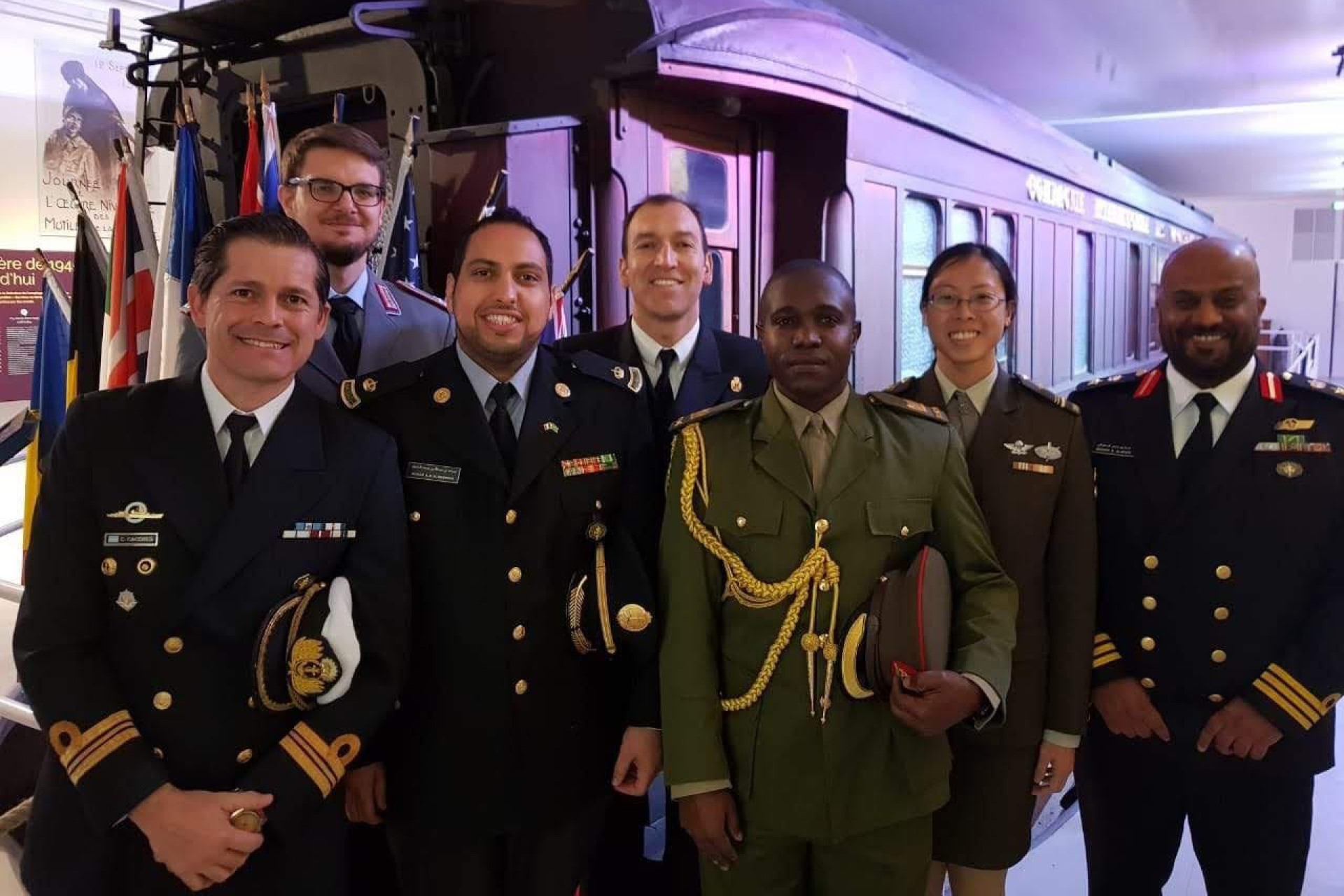 2018年,Toh六级军事专才(右二)在就读法国指挥参谋学院时与其他国际学生合影。