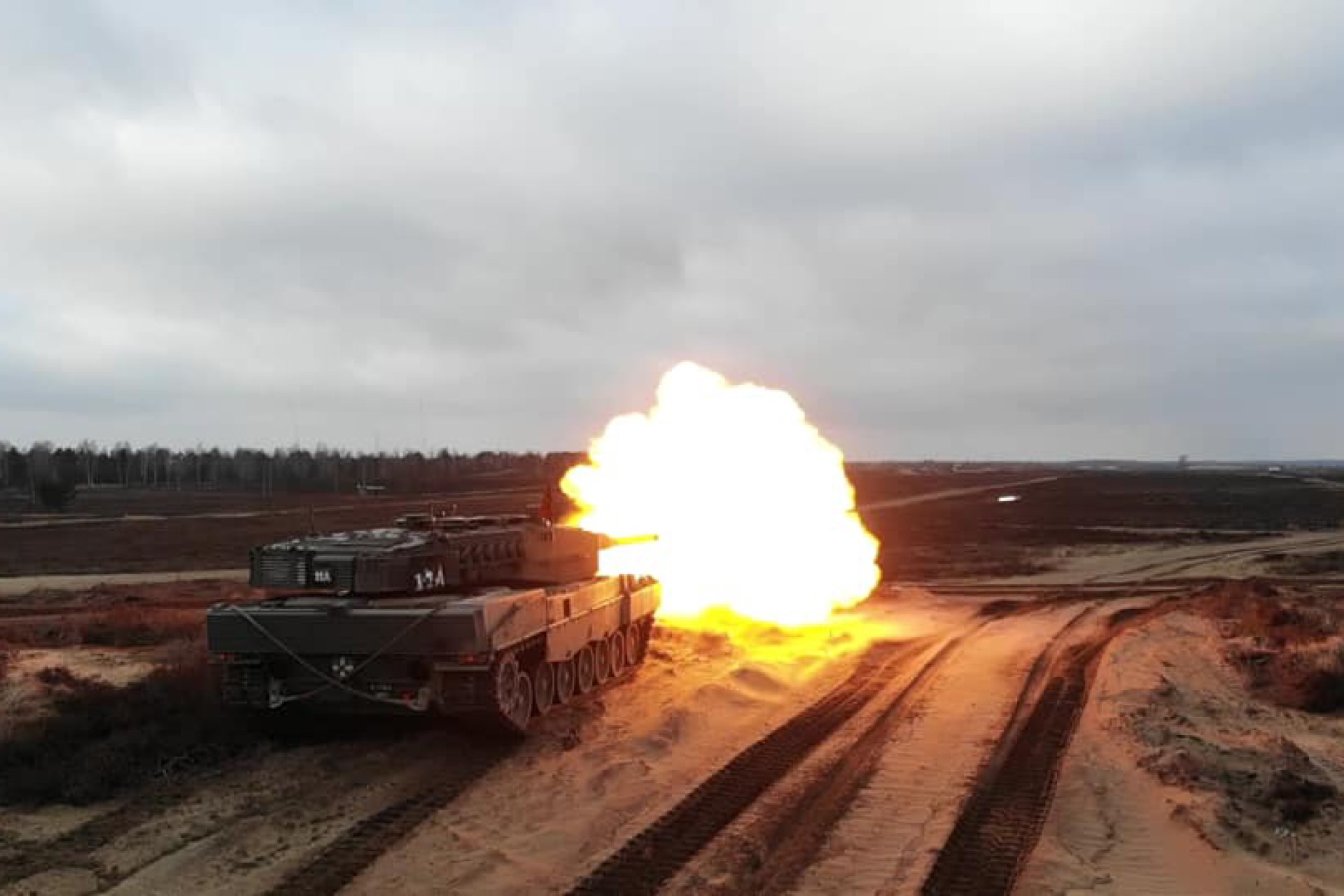 新加坡陆军的豹2SG型坦克在2019年装甲攻击演习中进行实弹射击。Lee准尉长是在战斗坦克上训练的核心小组的一员,也是组建第一个豹型坦克营的先驱者之一。[资料照片]