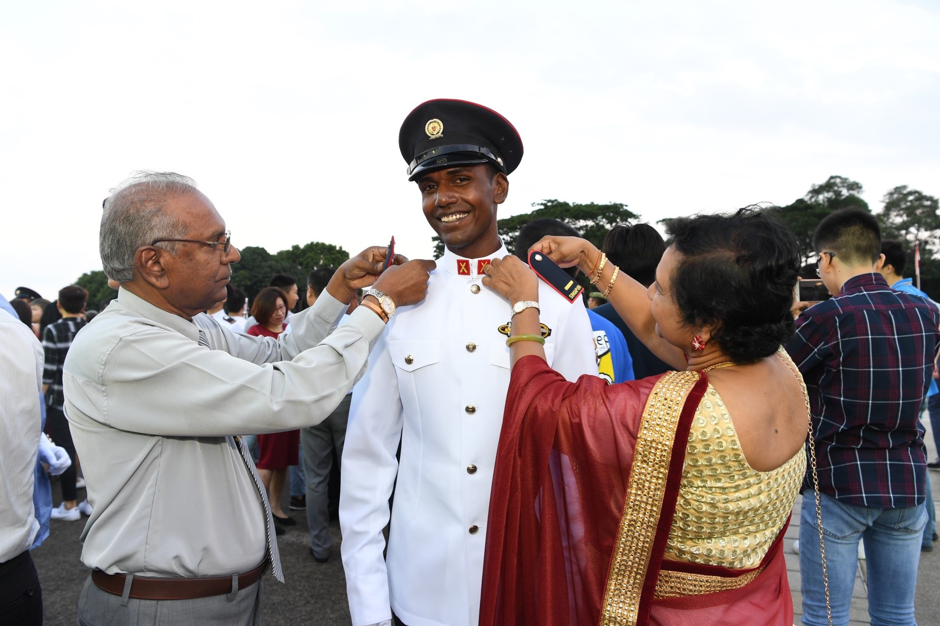 他是3月16日在新加坡武装部队军训学院被任命为新加坡武装部队军官的220名学员之一,其中159人来自陆军,26人来自海军以及35人来自空军。