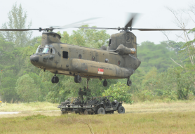 此外,他们负责训练武装部队的其他单位,协助发展各单位的空吊能力。第三运输营空运终点连队的指挥官刘德祥上尉解释说:“武装部队单位必须能够随时在有需要的时候,执行空吊任务。因此,我们培训他们在装配、设立搭载和空投区,以及检验负载物方面的技巧。”