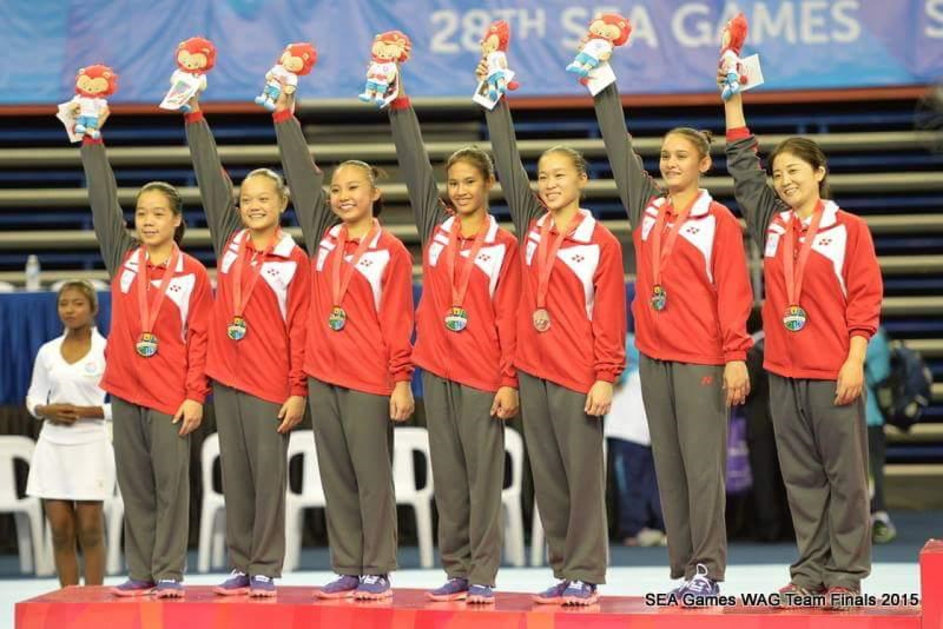 在2015年东南亚运动会上,戴中尉正在表演自由体操。在戴中尉获得她的第一枚奥运会奖牌之后,她很高兴看到她的朋友和新加坡同胞前来为她的体操队加油。