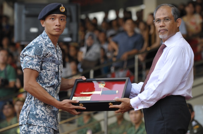 此外,郭见习专业军士也从内政部兼外交部高级政务部长马善高·朱基菲检阅官手里接过所获得的金刺刀奖。该奖专门颁发给那些取得卓越���绩的受训者。
