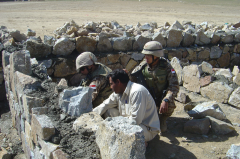 在2008年被部署到巴米扬的建筑工程团队正在监督安全墙的施工。同时,他们也帮助当地居民兴建区域保健训练中心。