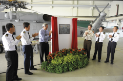 教育部长兼国防部第二部长黄永宏医生(左二)为中队牌匾揭幕,示意海军直升机正式加入新加坡空军的第123中队。