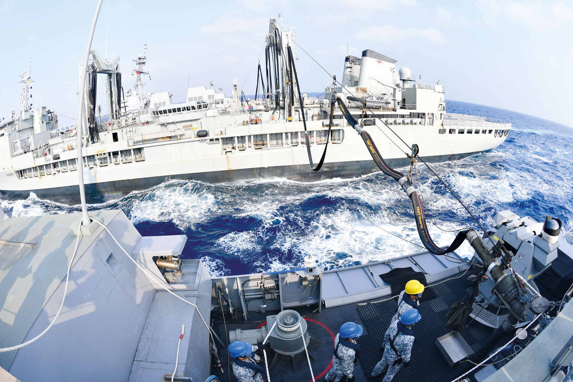 RSS顽强号接受补给舰HMAS成功号添油。