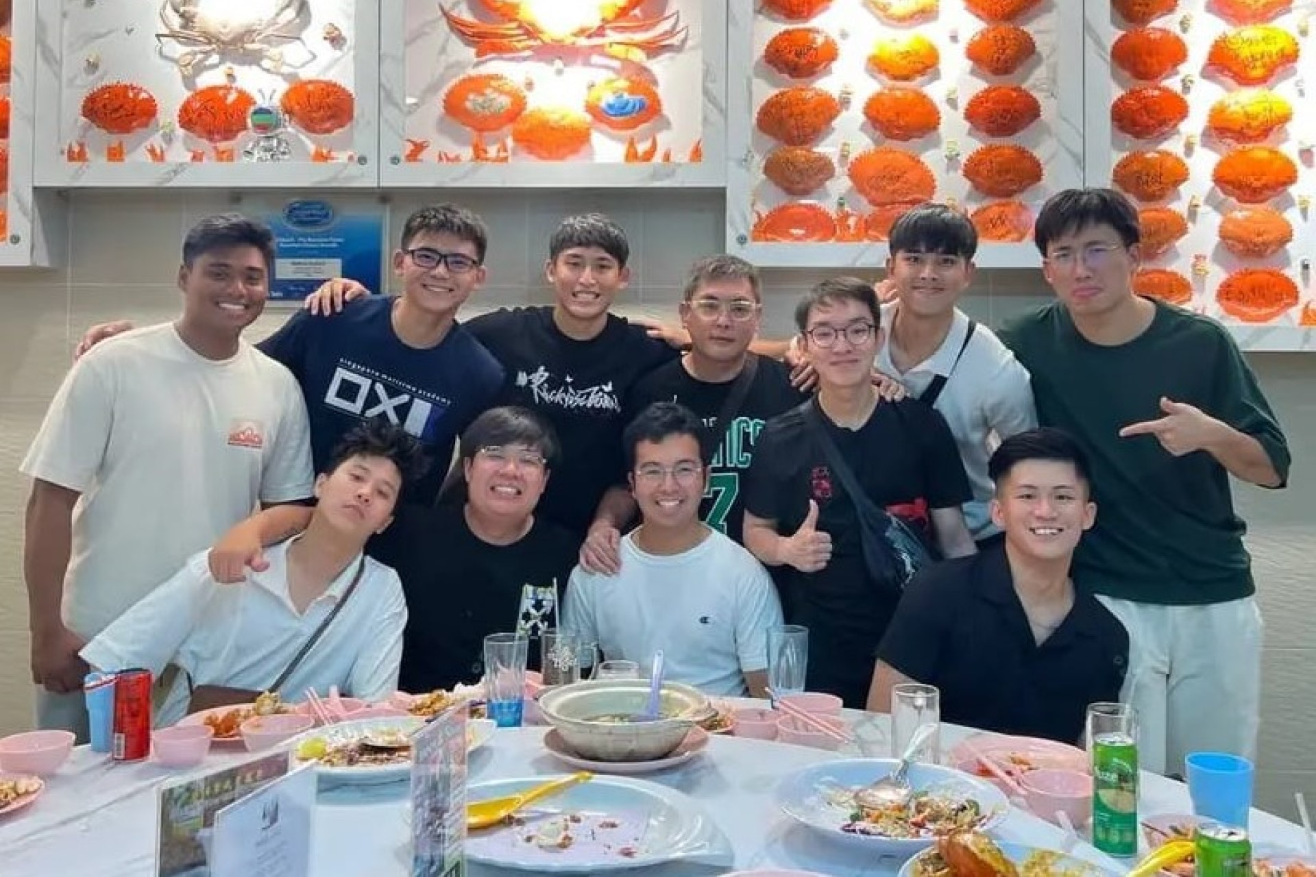 Leow一级军事专才和Ang三级军事专才(站位,右三和右四)与学习者们聚会。学习者对Ang三级军事专才的关心和帮助表示非常感谢。