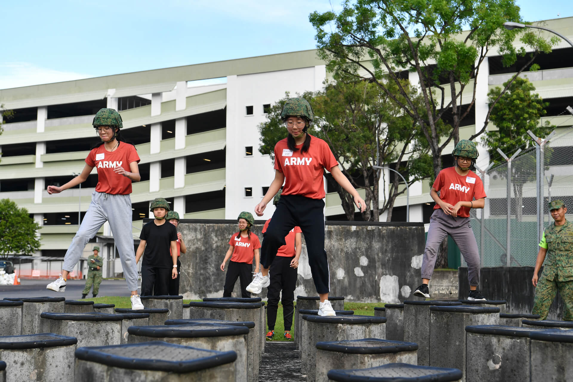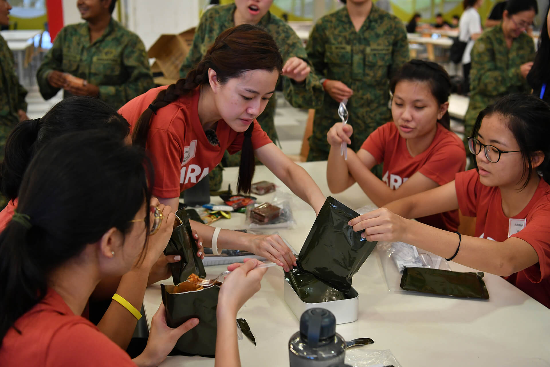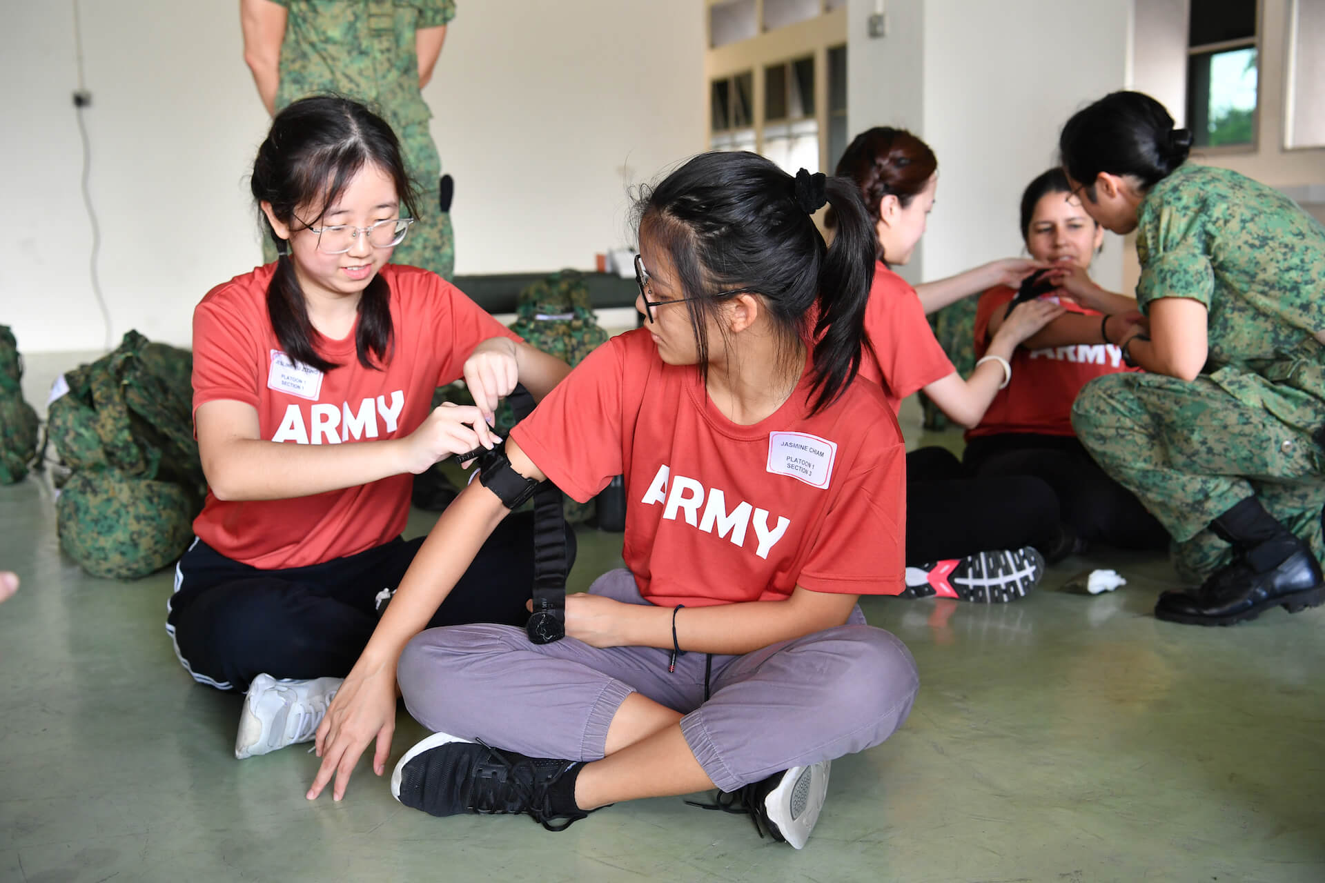 19 岁的阿什琳·莫汉(Ashlyn Mohan)(右)说,这两天的经历让她感受到了国民服役中的团队精神。
