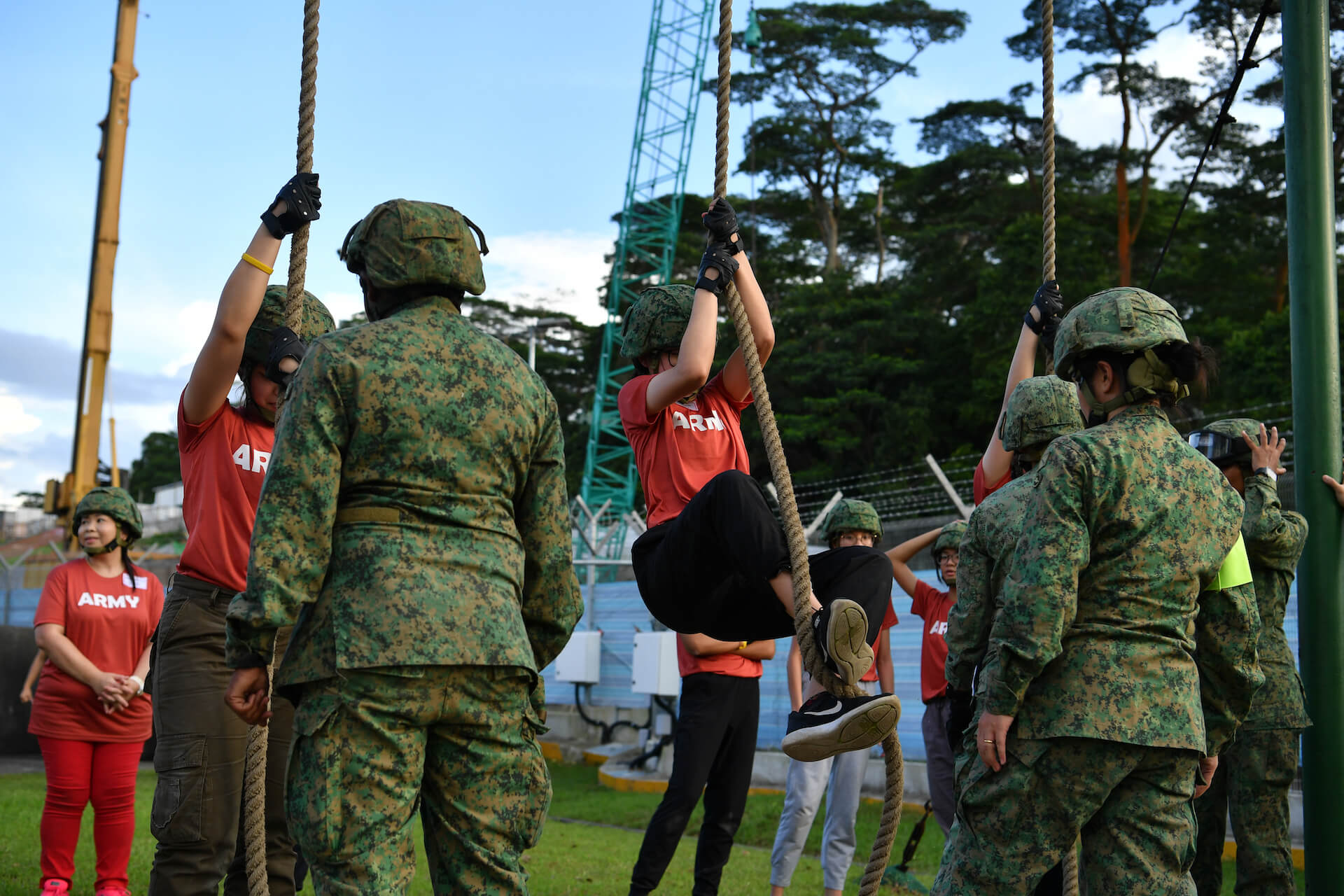 参与者正在低绳训练场中攀登——这是SOC中的第六个障碍。