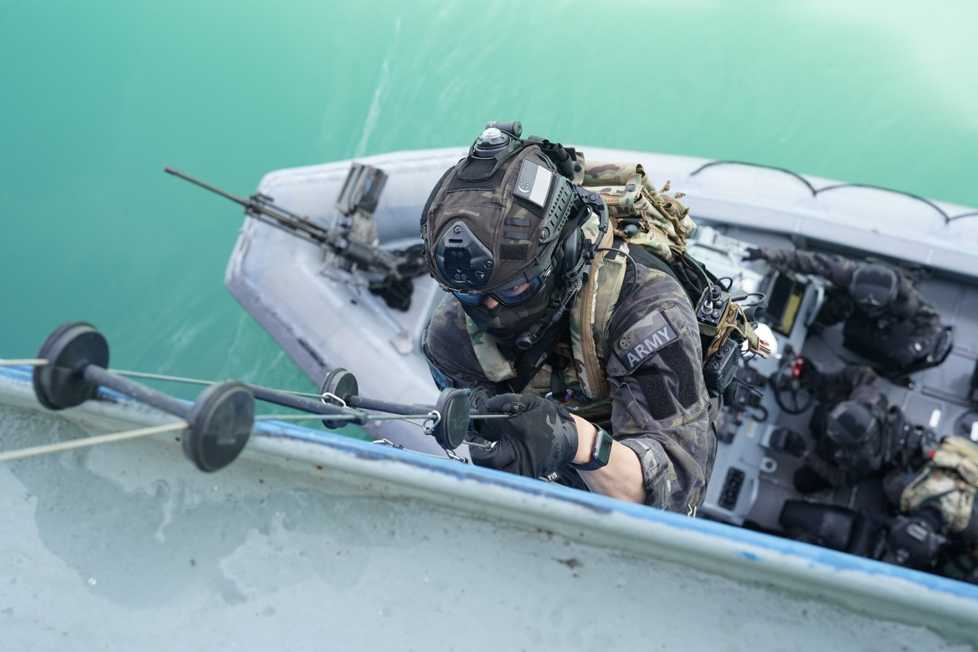 他看到了各个机构如何相互协调以确保作战区域的安全,封锁附近的海上交通,并消除被劫持船只上的模拟恐怖威胁。