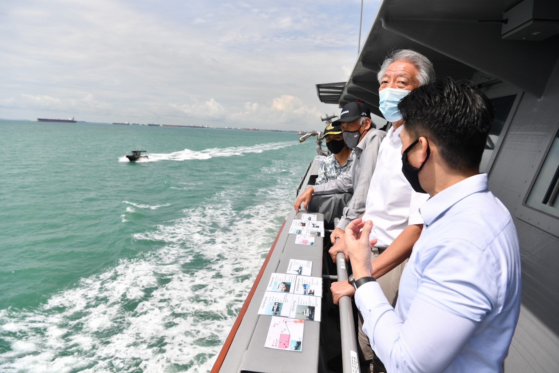 11 月 12 日,国务资政兼国家安全统筹部长张志贤在樟宜海军基地的新加坡号上观看了演习的结尾阶段。