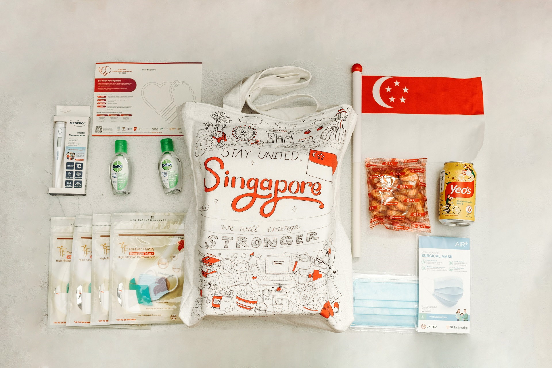 - 在社区中心/俱乐部(7月20日至8月2日)或居民委员会中心(7月20日至26日)上午十点到下午六点(公共假期除外)领取您的新加坡联合礼包。请记住带上您的国民身份证以进行验证用途!