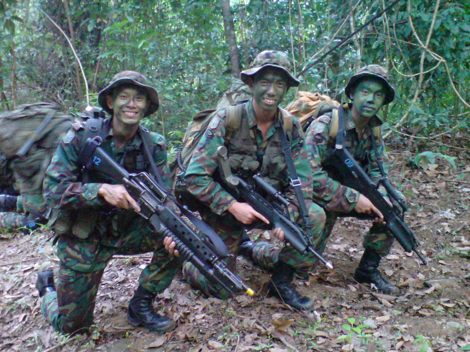 2006 年,当时的洪中尉和他的第 1 突击营分遣队伙伴们在新加坡进行野外训练。