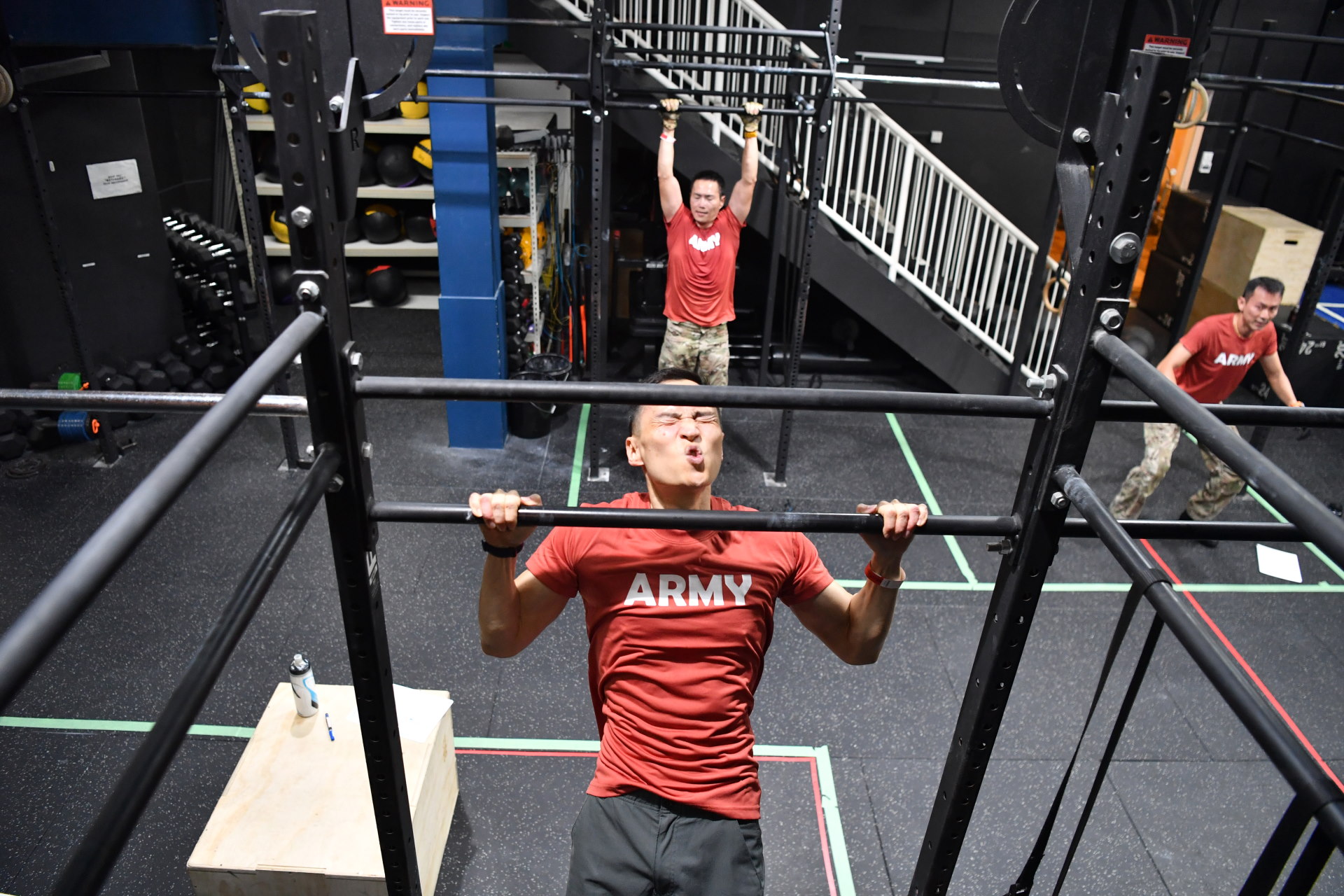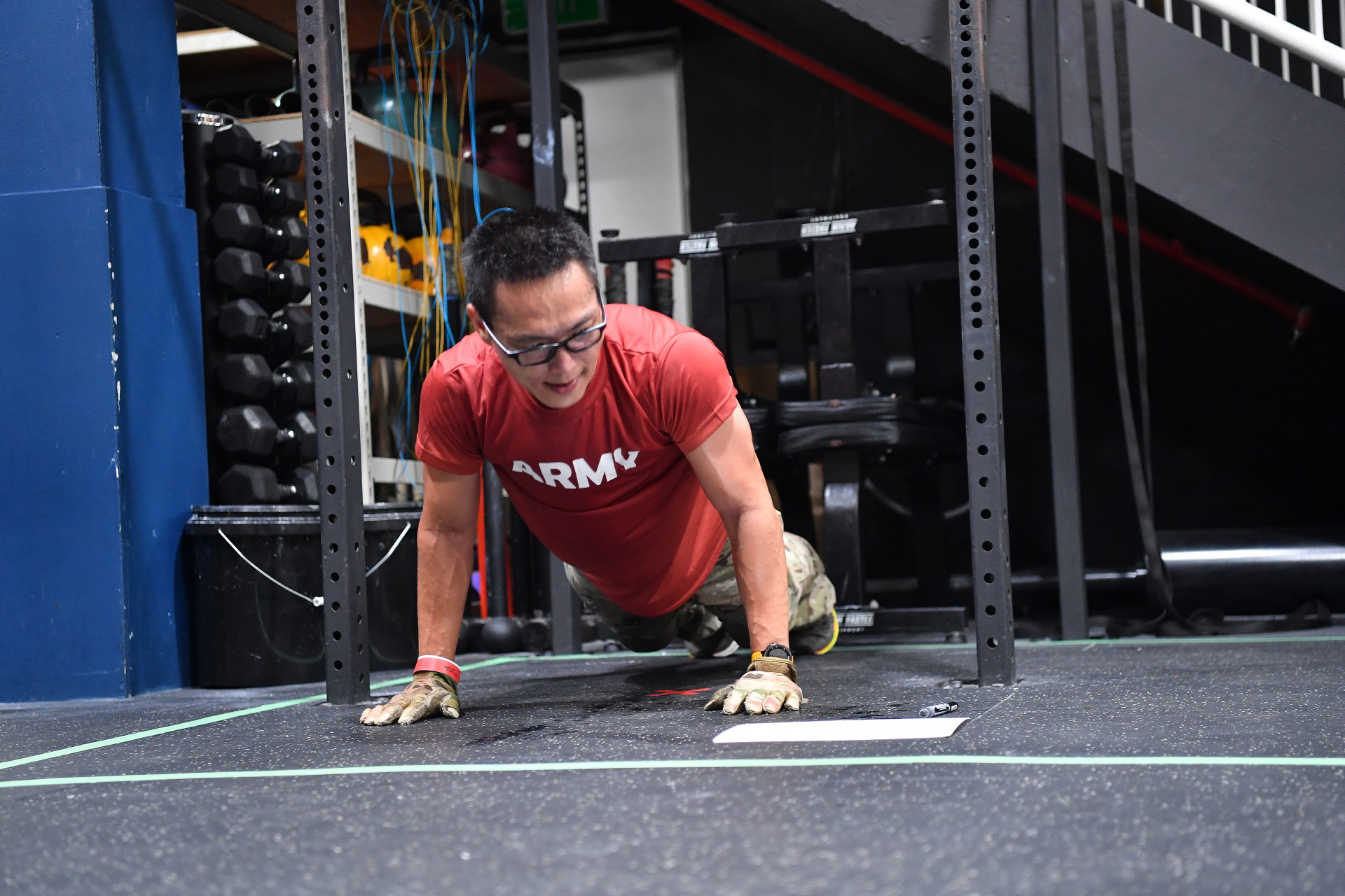 他是参加正在进行的军人节Red-X 社区体能挑战赛的 100 多名战备军人和公众成员之一。