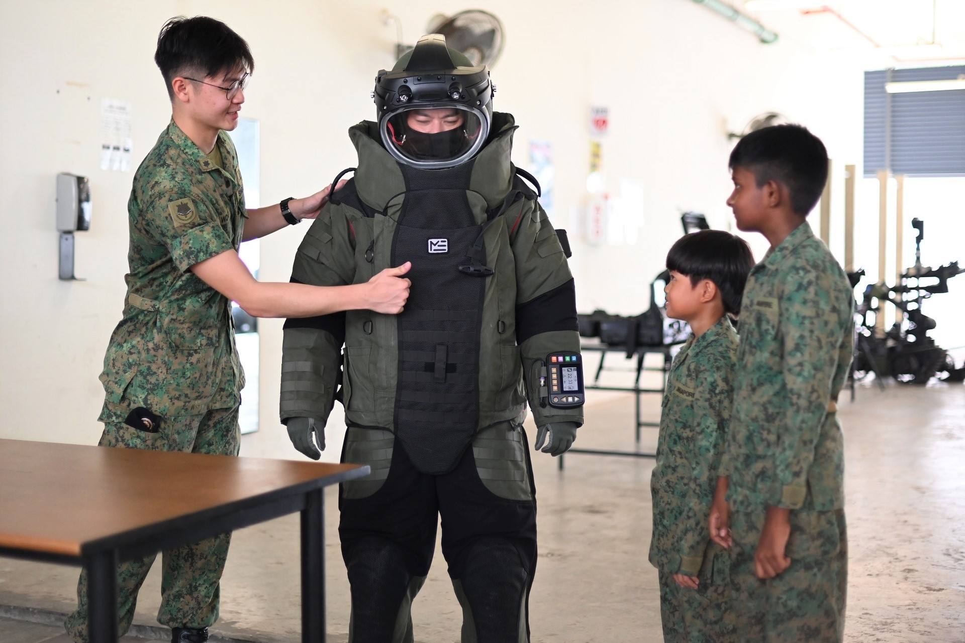 动手操纵机器人和参观防爆服:作为国锋儿童节特别活动的一部分,两名幸运的男孩得到了与新加坡武装部队的排爆员共度一天的机会。
