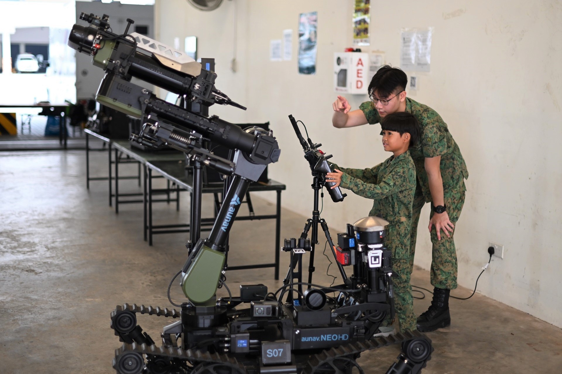 今年10月,9岁的Reuel Teo和11岁的Dharran Raj获得了一次难得的机会,参观了新加坡战斗工兵团第36营(36 SCE)的家。在那里,他们体验了排爆(EOD)职业障碍课程(VOC),检查了(假)炸弹,并操纵了一个大型机器人。