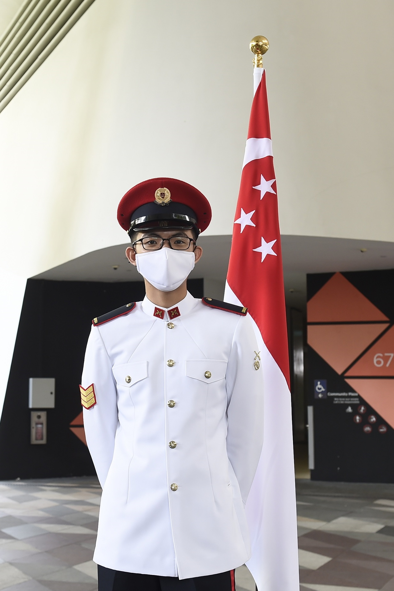 “我的职责是当国歌奏响时升起国旗,却又不能抬头看国旗,这是一种挑战。这需要精准的动作,”这位现年20岁,来自新加坡武装部队宪兵司令部宪兵执法单位的宪兵说。