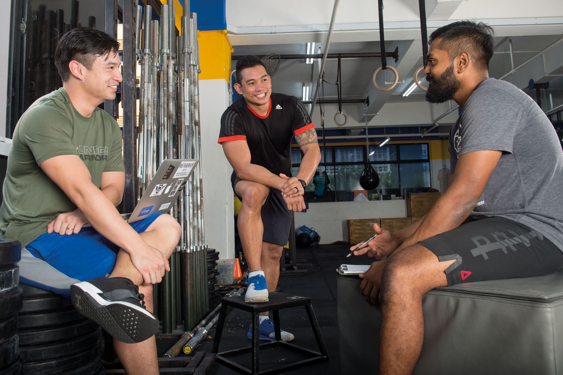 在2014年,关上尉(国民服役)和他的体能训练伙伴-29岁的莱昂内尔 张中尉(国民服役)和在新加坡警察部队服役的Moses James一起开办了这个健身中心。他们一起管理着健身中心的方方面面:从制定和实施健身计划到清扫健身中心的地板。