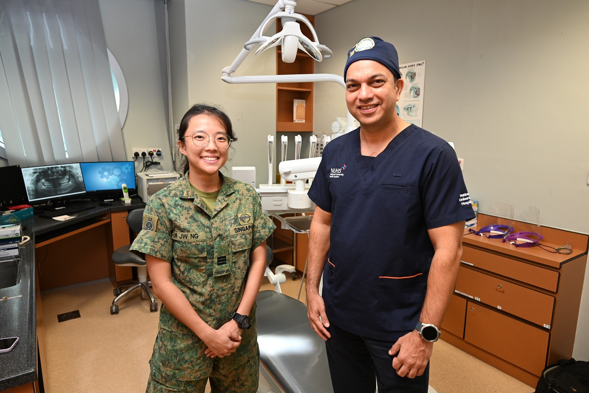 现在,这位新加坡武装部队志愿军(SAFVC)的医学培训师(牙医)正在利用他的知识和技能指导军队中的牙科军官。