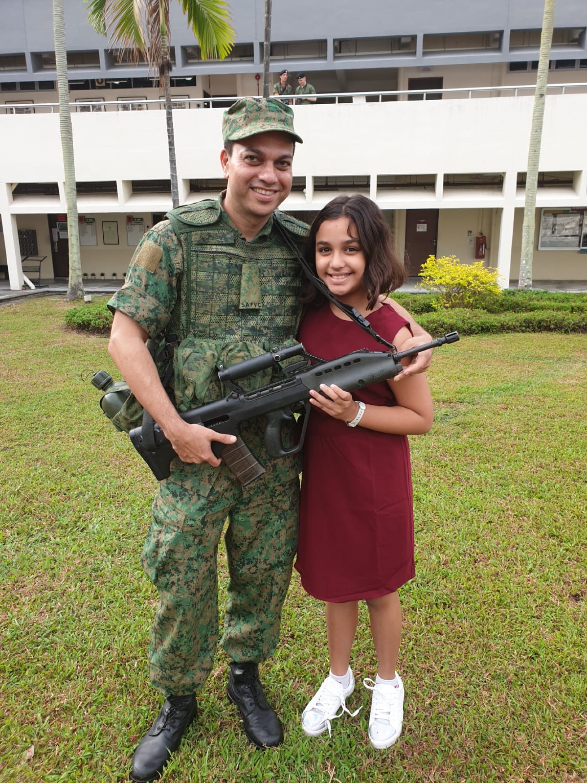 他希望传播这一信息,鼓励更多的人士加入:"事实上,我有两个朋友的妻子从我这里听到这样的讯息后就申请加入了新加坡武装部队志愿军!我的女儿15岁了,我也一直告诉她应该加入!