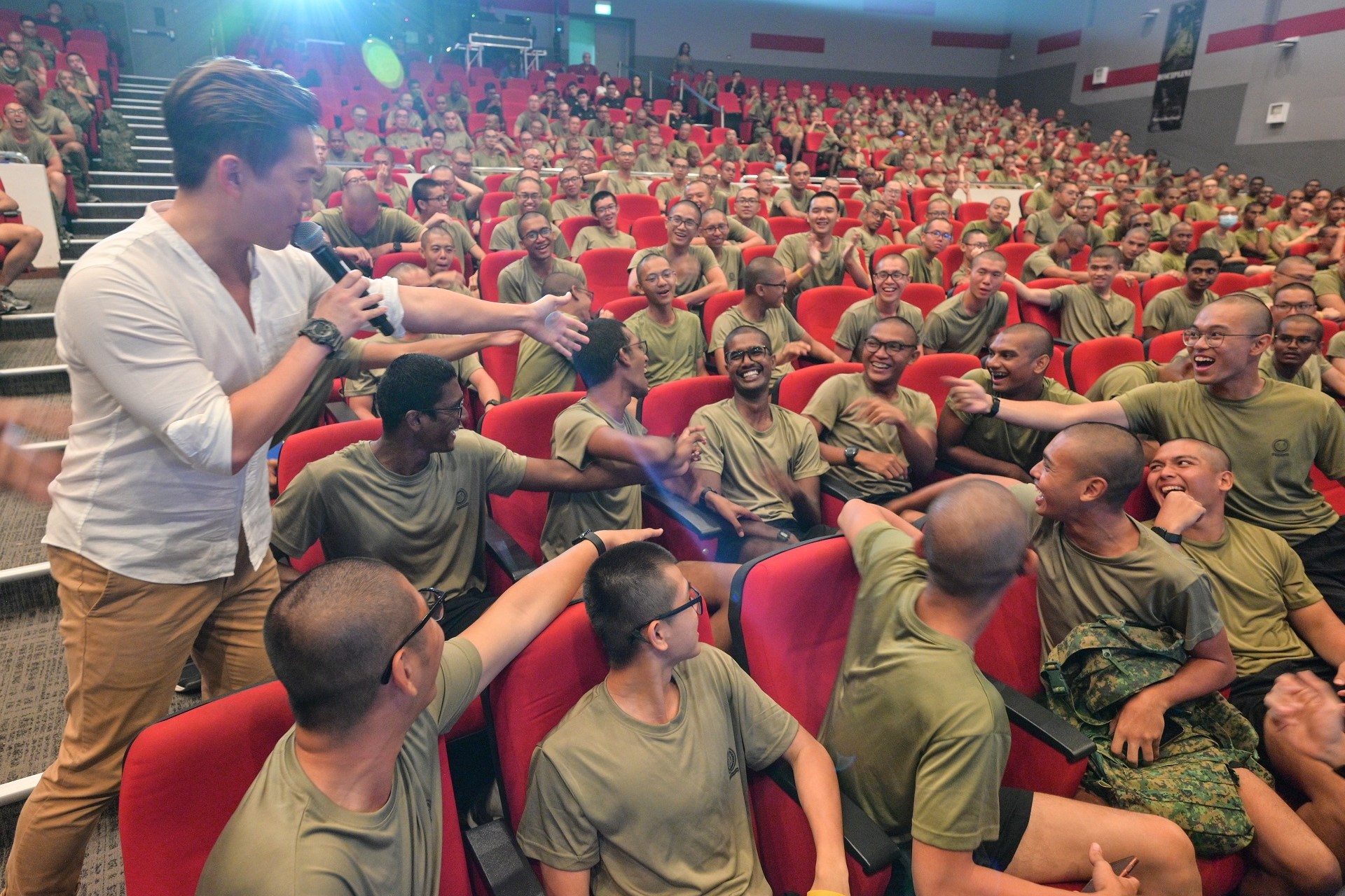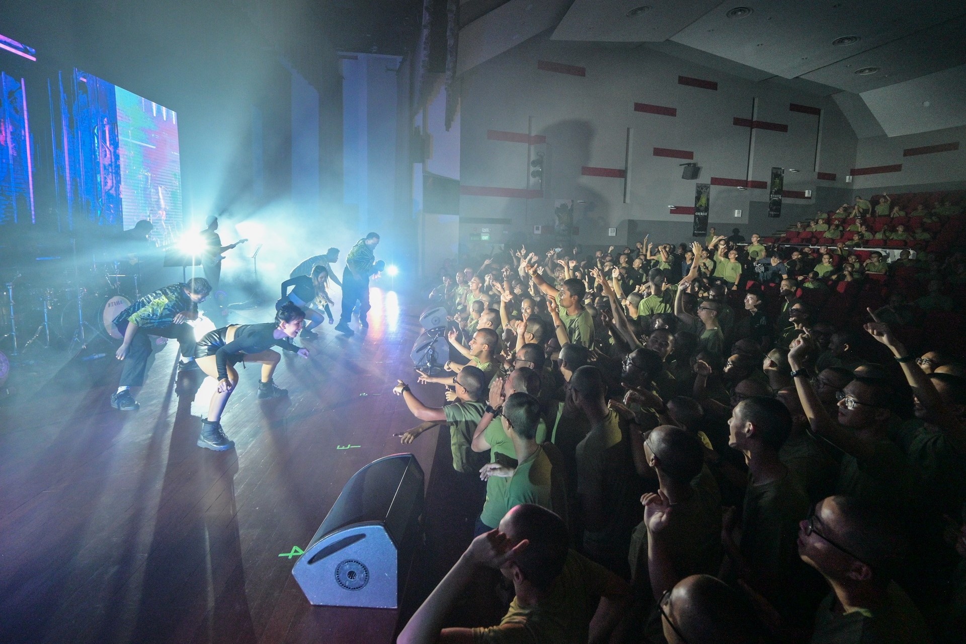 这是在德光岛训练的漫长一天。晚餐后,你进入一个装有空调的礼堂……尽情享受一���时的现场音乐和表演 – 欢迎来到新兵之夜!