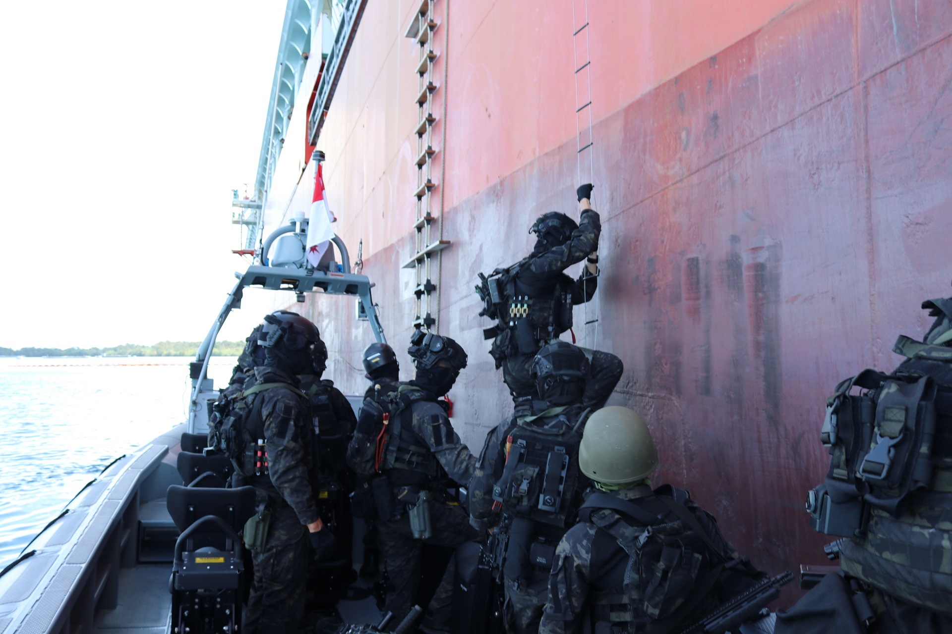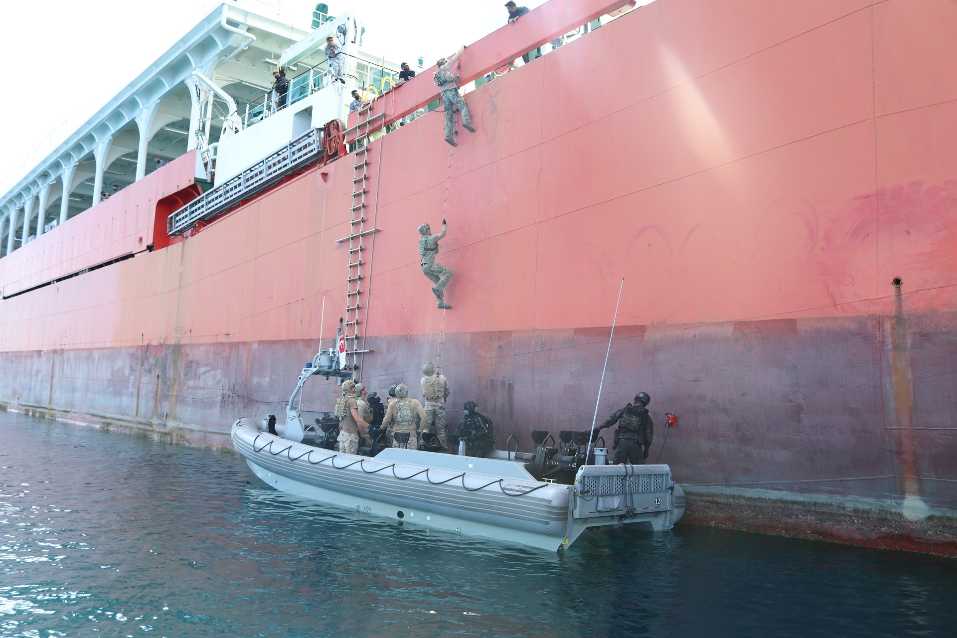 2) 新加坡和美国海军潜水员进行了海上反恐训练和联合登舰演习。