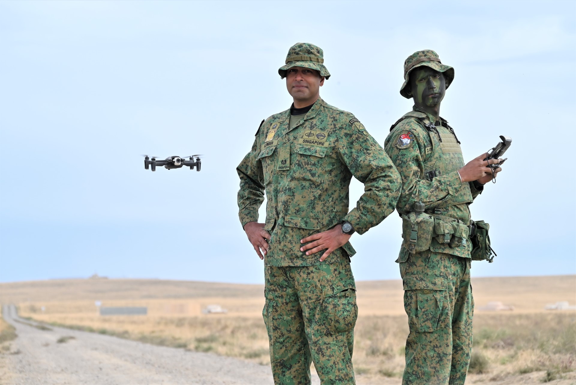 "我们来到锻造武刀演习的目的是在一个非常不同的飞行环境中测试无人机。当在新加坡时,我们在树叶下驾驶无人机,而在这里我们可以在模拟城市建设的广阔景观中驾驶无人机。