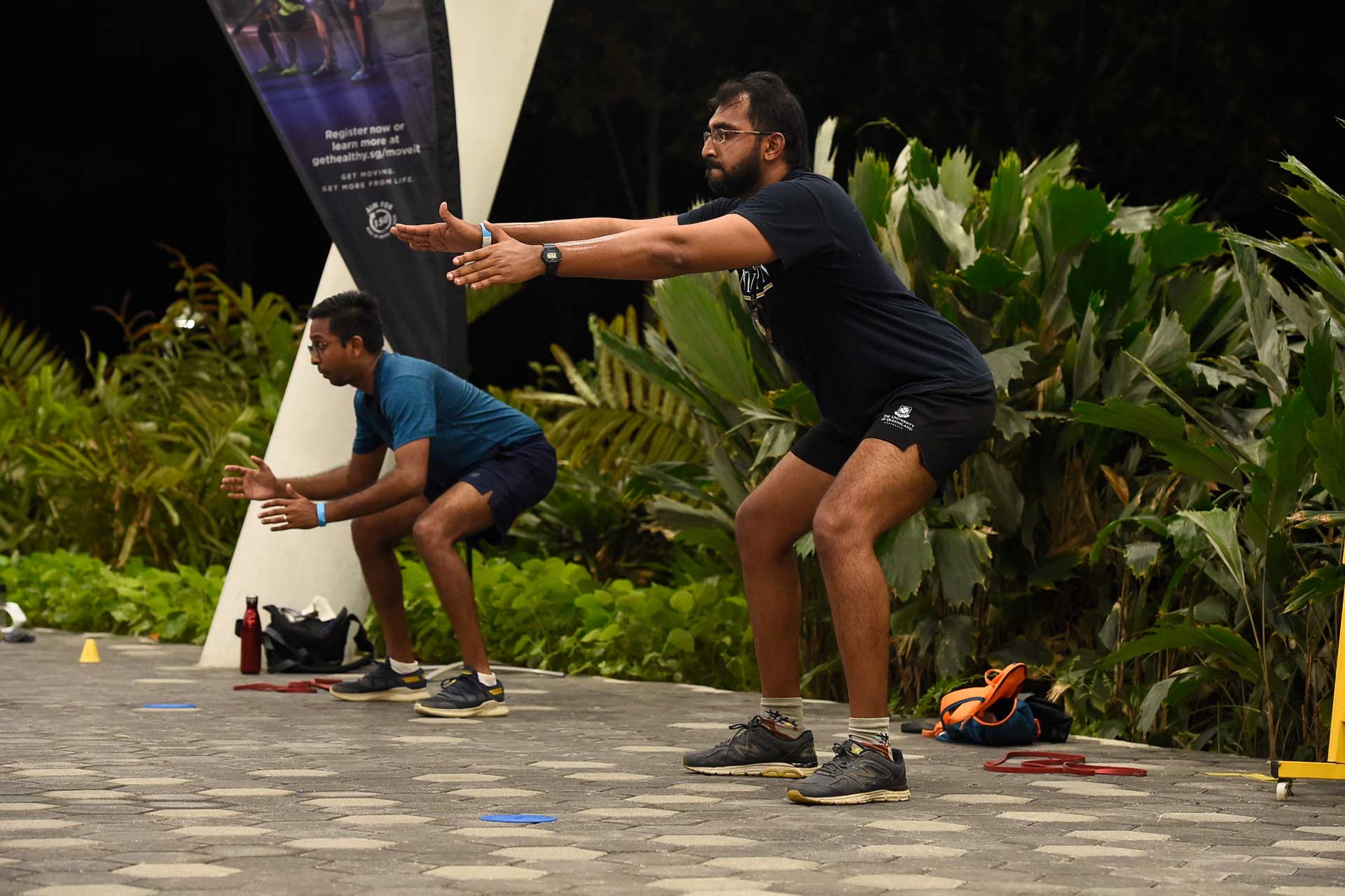 4月13日,他们夫妻俩一起去ActiveSG园@裕廊湖公园(ActiveSG park @ Jurong Lake Gardens)参加了第一次高强度间歇训练。这种短时间高强度运动可以逐步增强力量、耐力和有氧体能。
