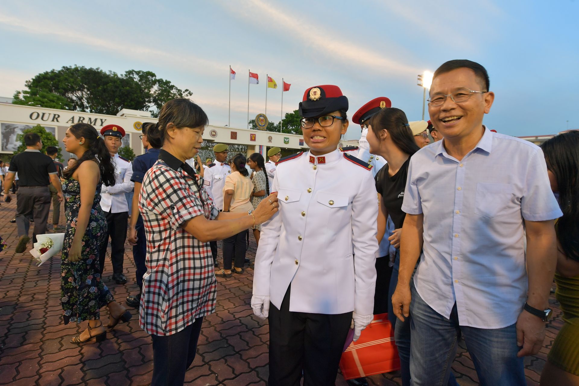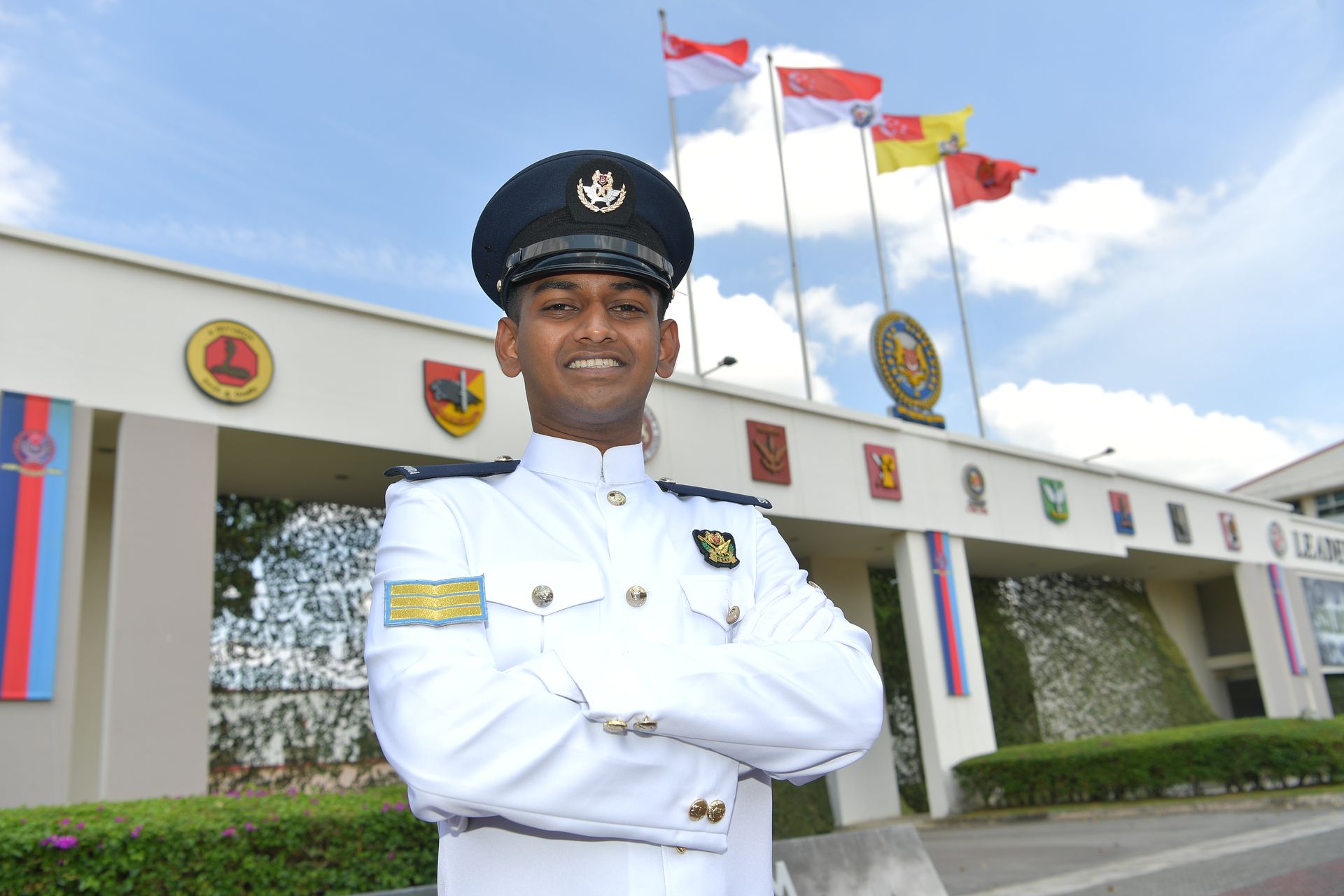 "你将肩负起率领士兵保卫新加坡主权的责任,对可能出现的任何挑战保持强健而有韧性。"