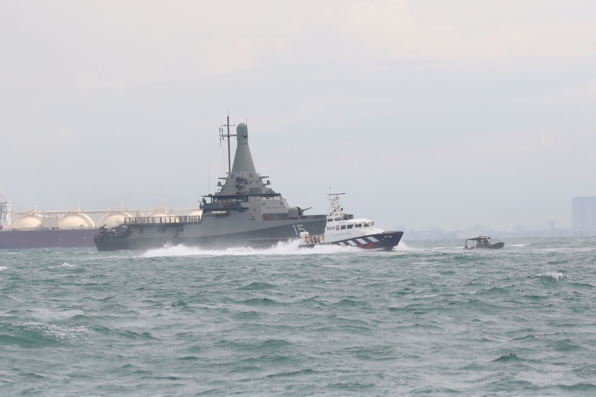 一艘小型快艇正驶向新加坡,并且没有停下来的迹象。本岛国的安全机构迅速团结起来以应对这个威胁;并对该威胁进行迅速压制。