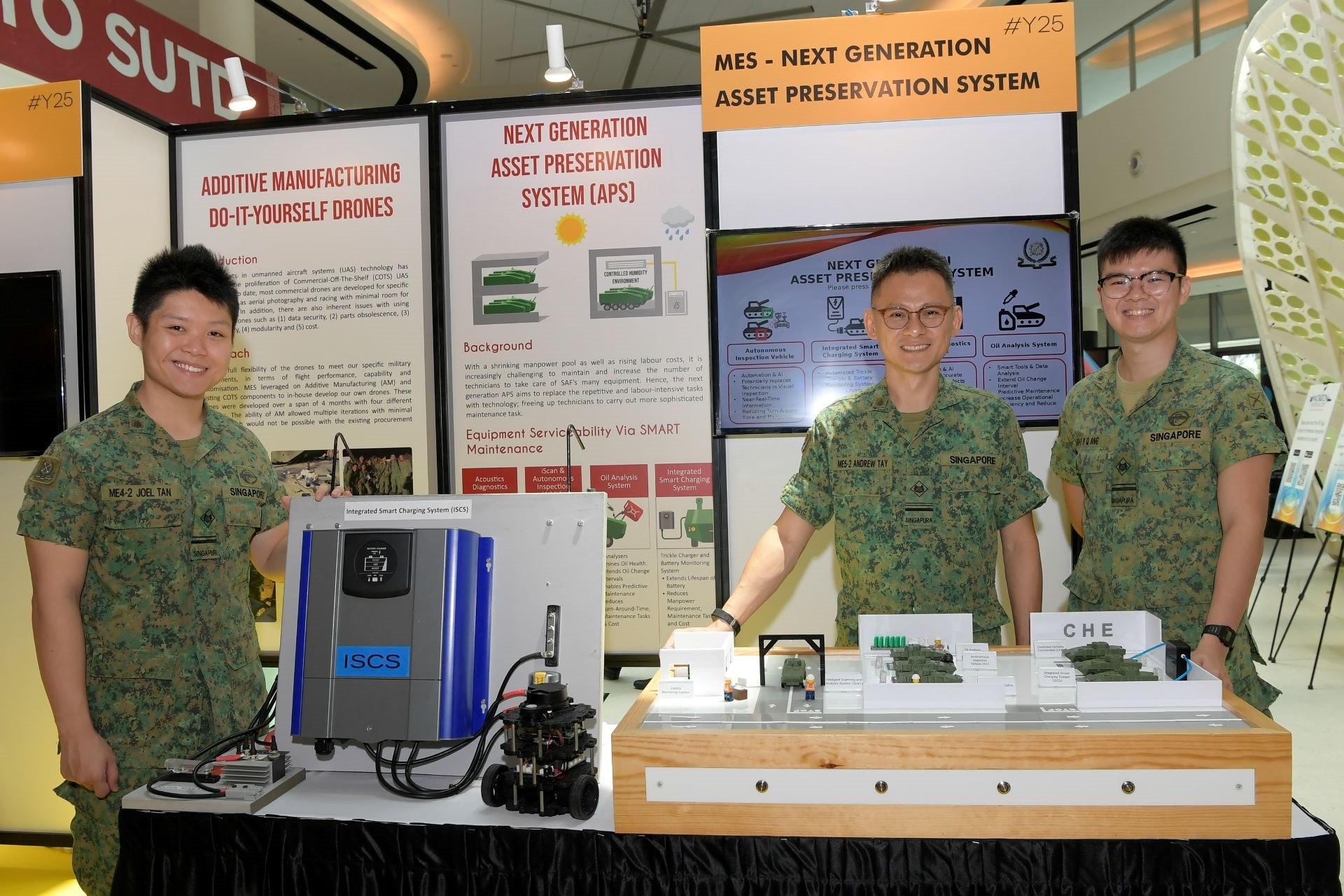 一种可以在飞机拖航操作中检测到三米以内障碍物的感应器。装有摄像头的便携式减速带,用于对车底进行检查。作为2019年创新研讨会的一部分,这些是新加坡武装部队服役人员提出的一些创新想法。