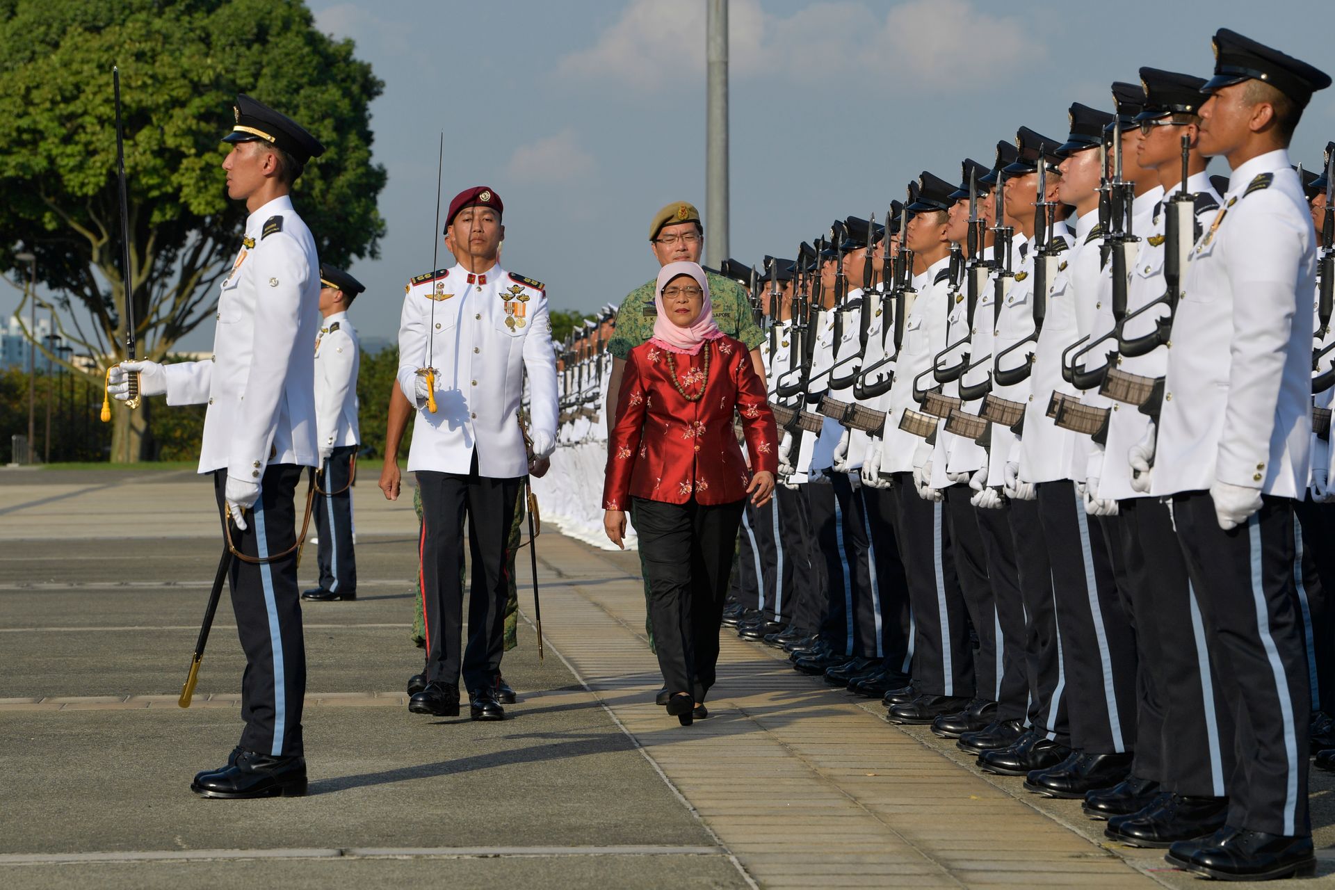 当晚晚些时候,哈莉玛总统在新加坡武装部队军训学院主持了军人节阅兵,在阅兵式上她向第33次获得最佳作战单位的第一突击营颁发国旗。
