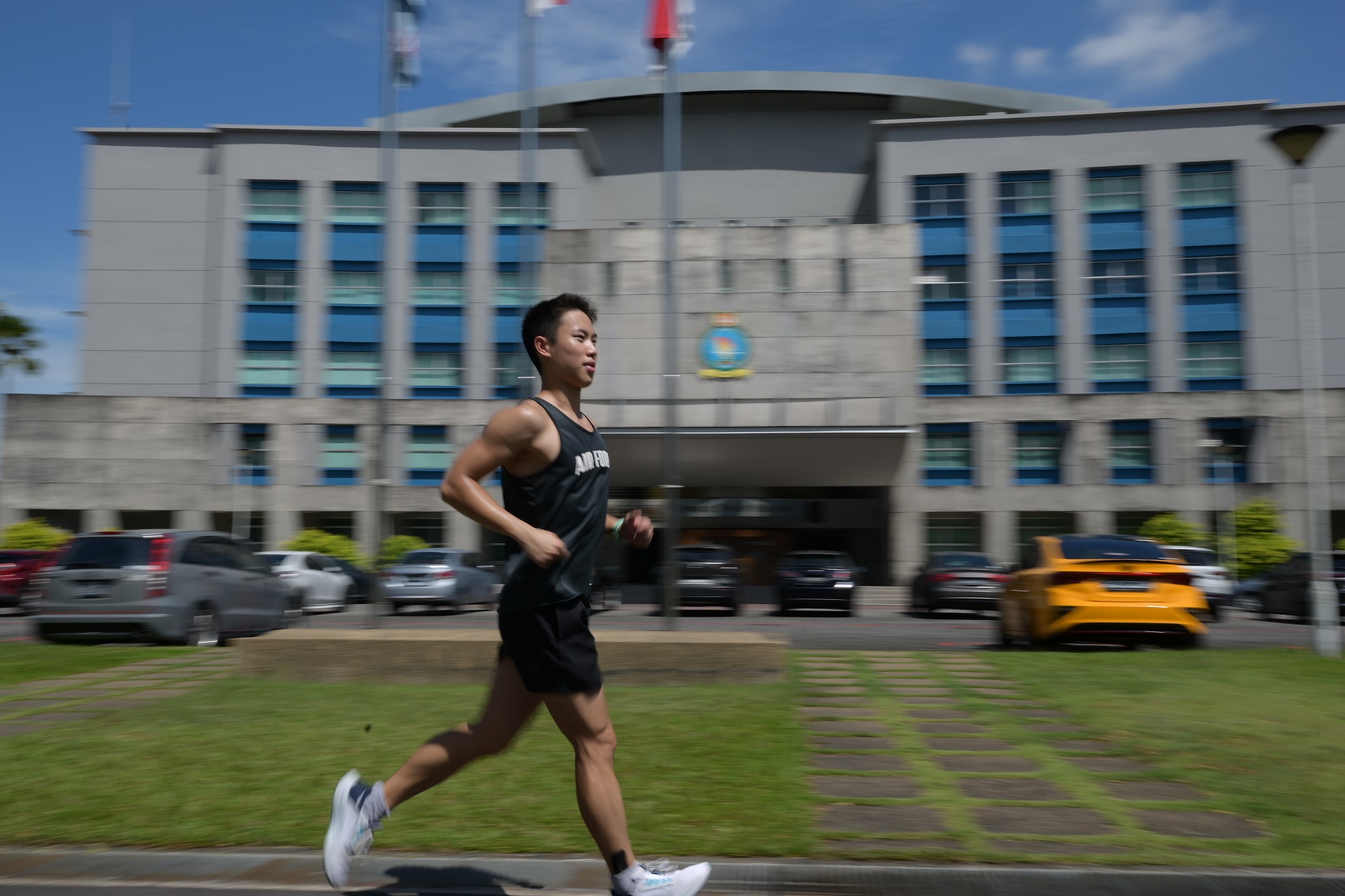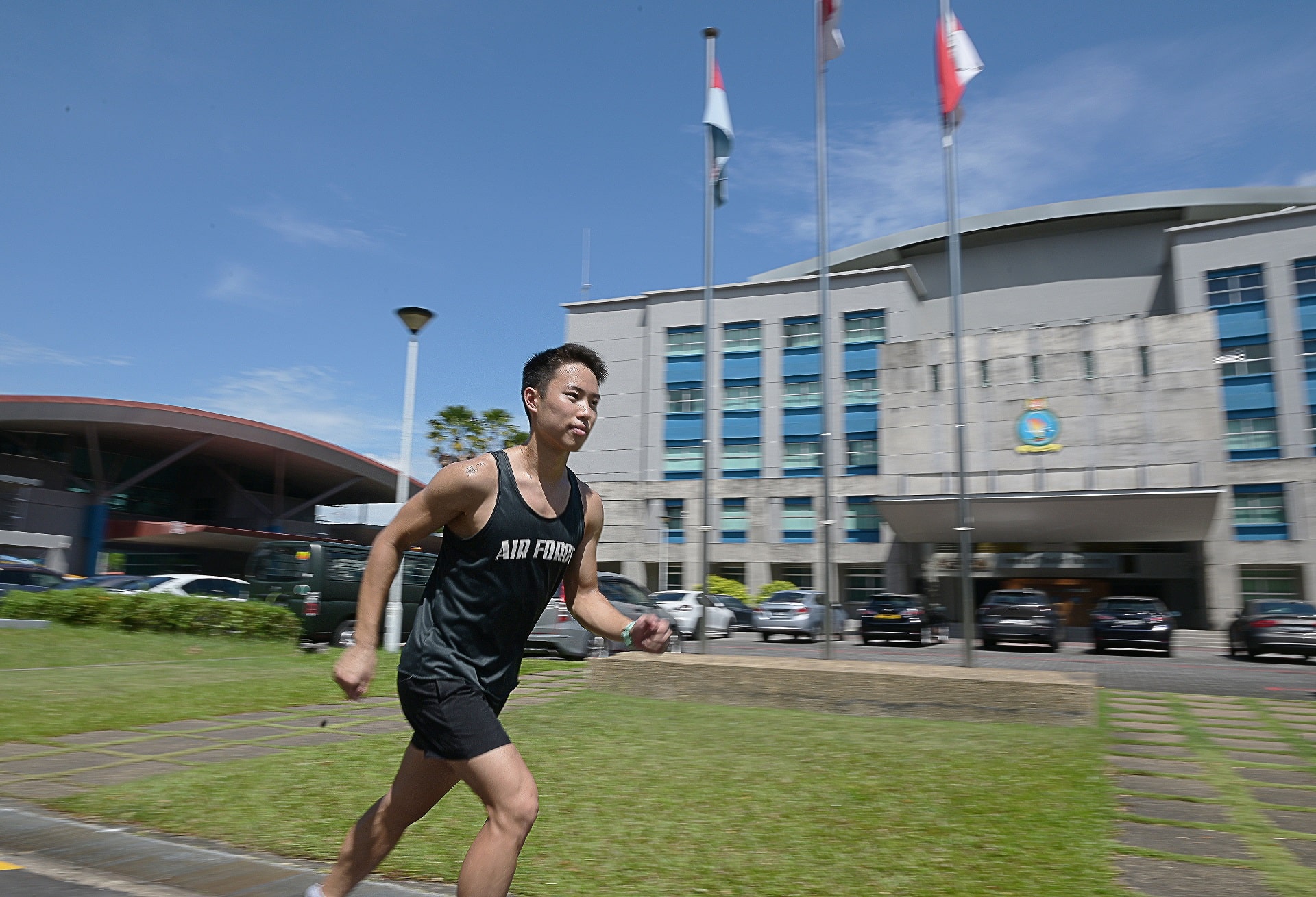 在苏州读书时,郑少尉是一名游泳选手。这对他的个人体能测验 (IPPT) 很有帮助,特别是完全与耐力有关的2.4公里跑步。