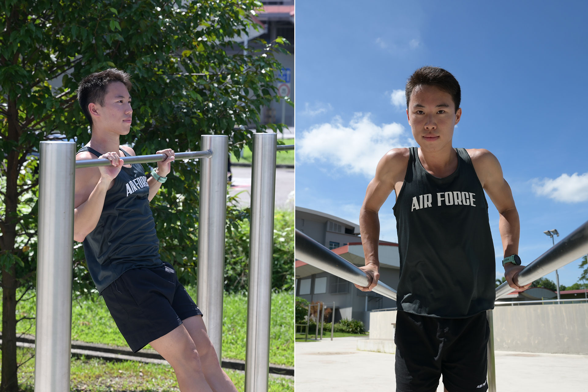 郑少尉: 我在参加国民服役(NS) 之前从未进行过个人体能测验 (IPPT),所以获得满分是我的一个个人目标。保持我的水平很重要,所以我一直在努力训练。我还想看看我能把自己逼到什么程度,以及2.4 公里能跑多快。这让我跑得更快。