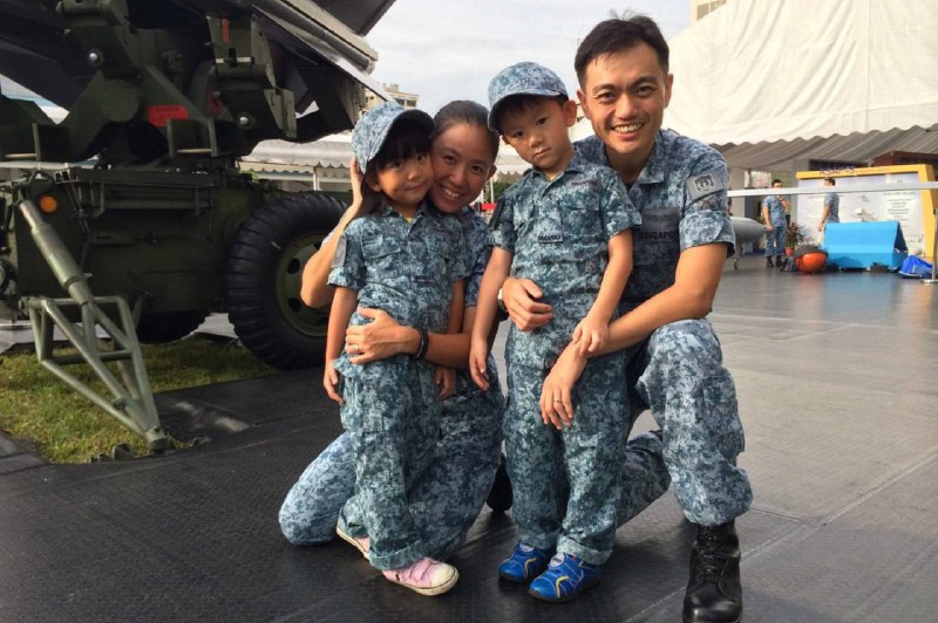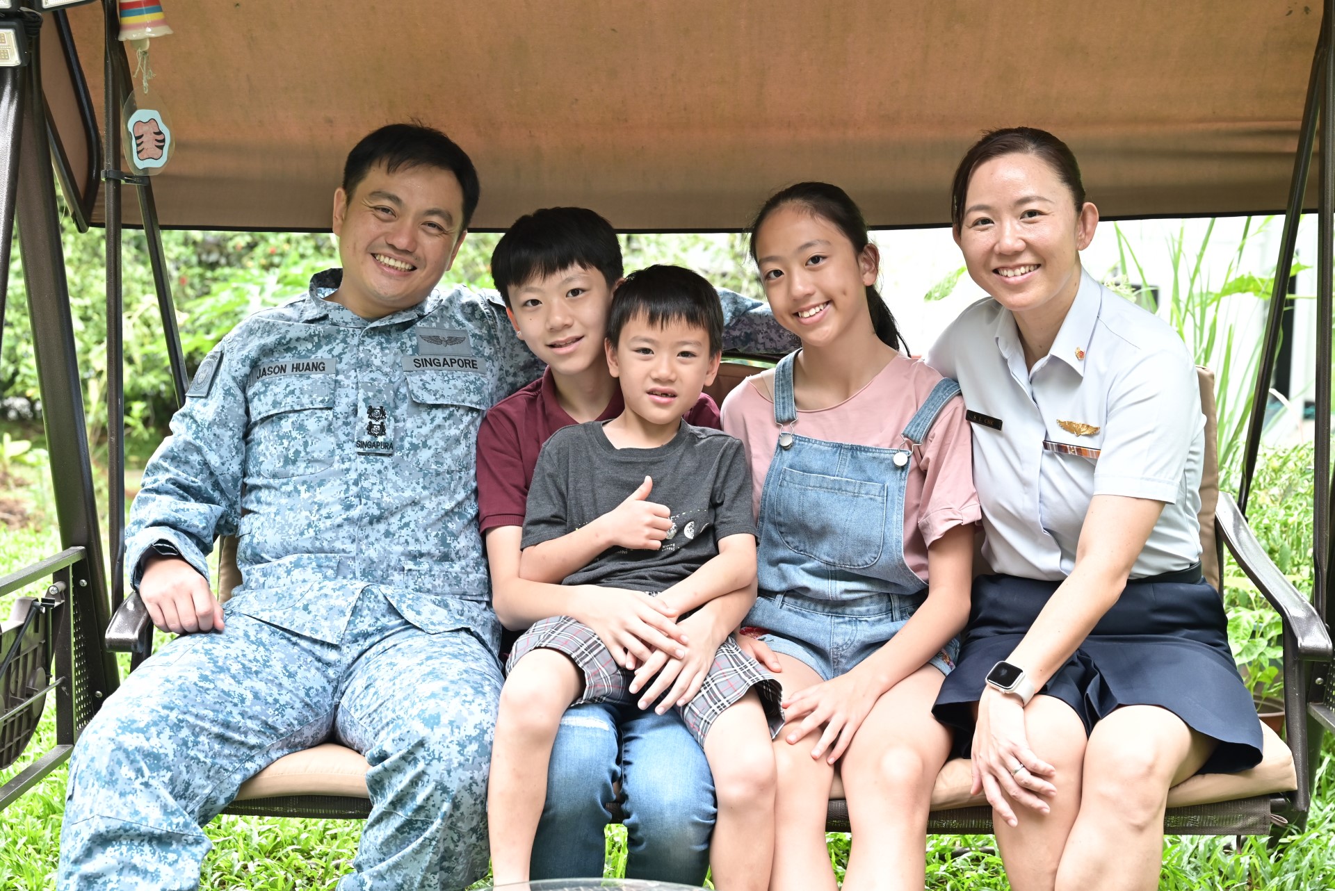 在工作中,她作为新加坡空军的一名军官,帮助保卫新加坡领空。回到家,她照顾家人,让他们保持坚强,犹如指挥官或上士长一般。
