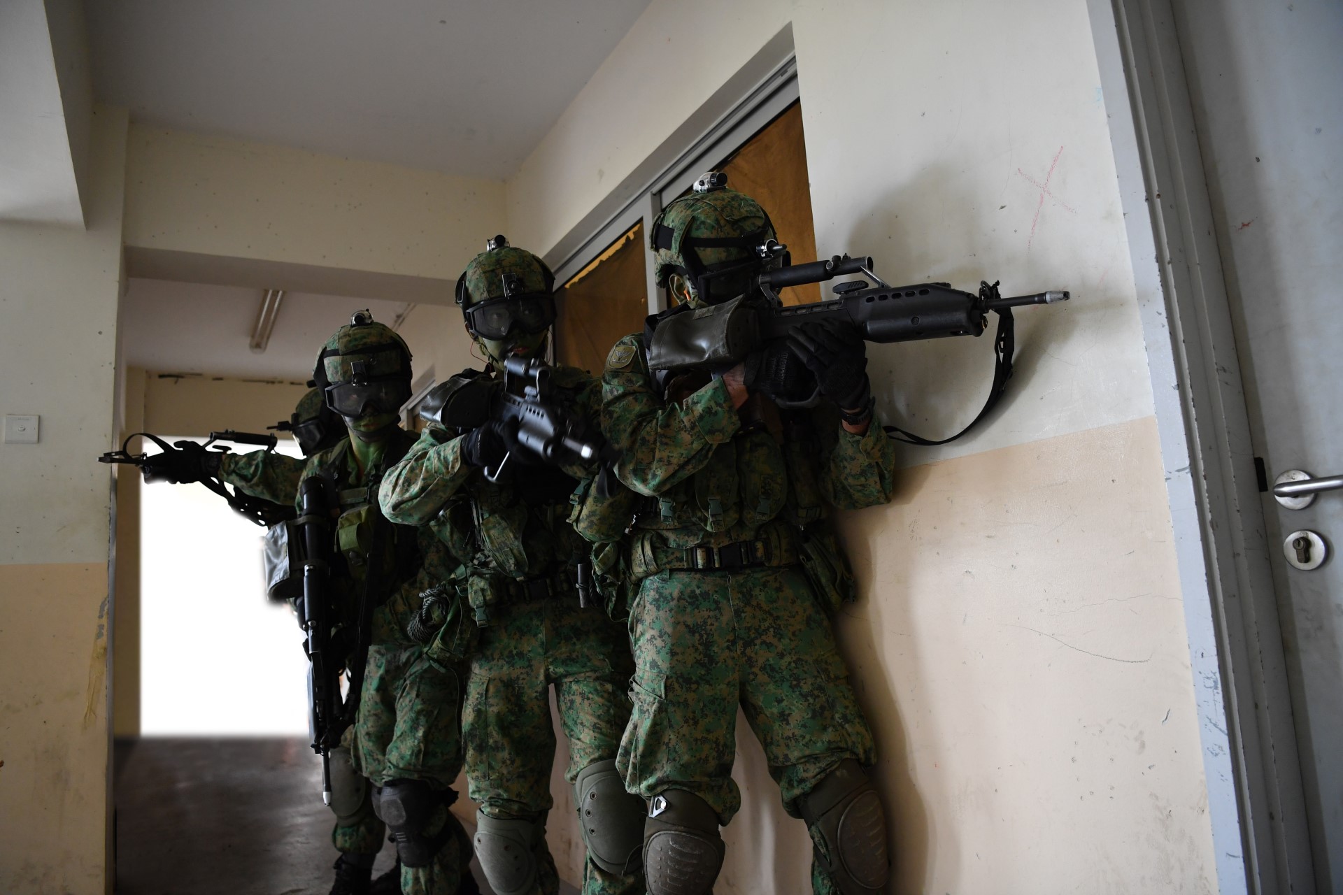 新加坡武装部队 (SAF) 突击队员们接受过深入敌方领土作战方面的训练,以其在空降、侦察和突袭任务等专业行动方面的高超能力而闻名。