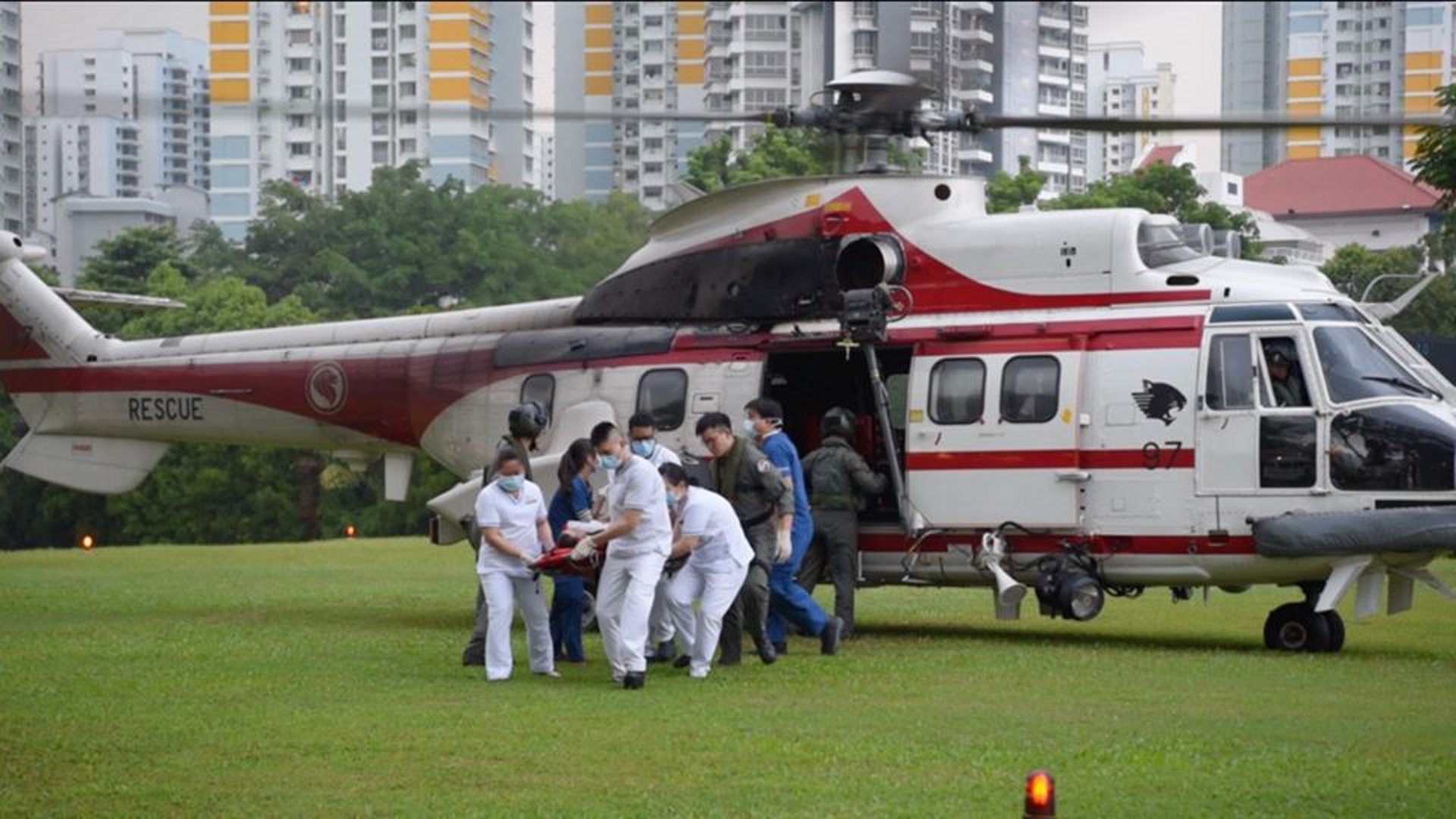 一旦登上直升机,医生和医疗人员将对伤员进行临时治疗,同时将其送往最近的医院。
