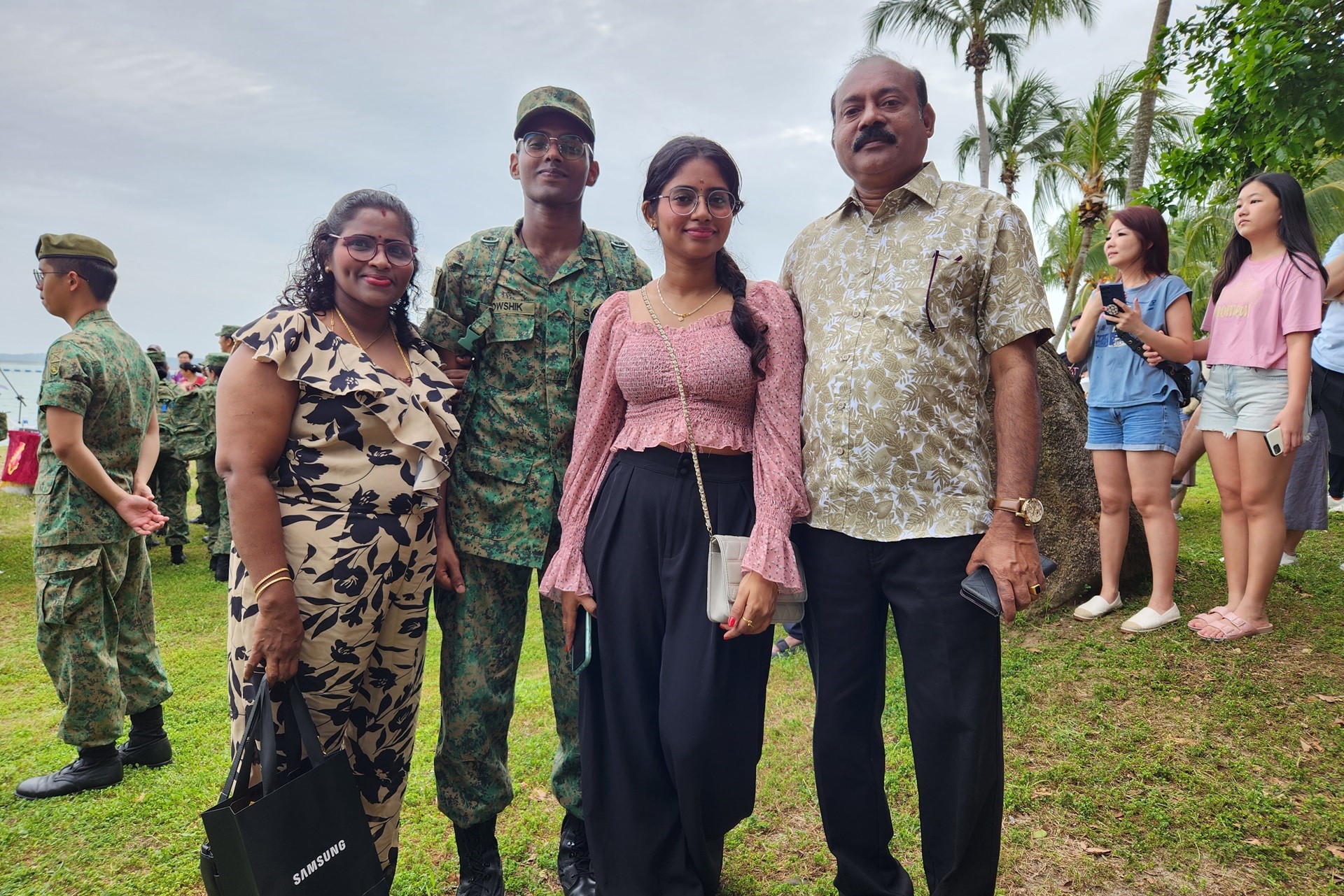 "我为他能为国家服役感到骄傲和幸运 – 我们成为新加坡公民已经20年了,他是第一个为国家服役的人。我们为他感到高兴,也很高兴今天能和他在一起,"她补充说。