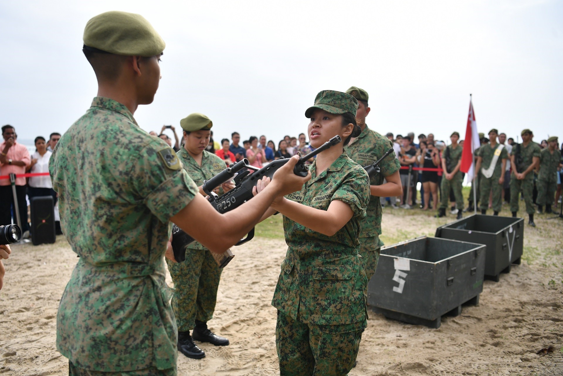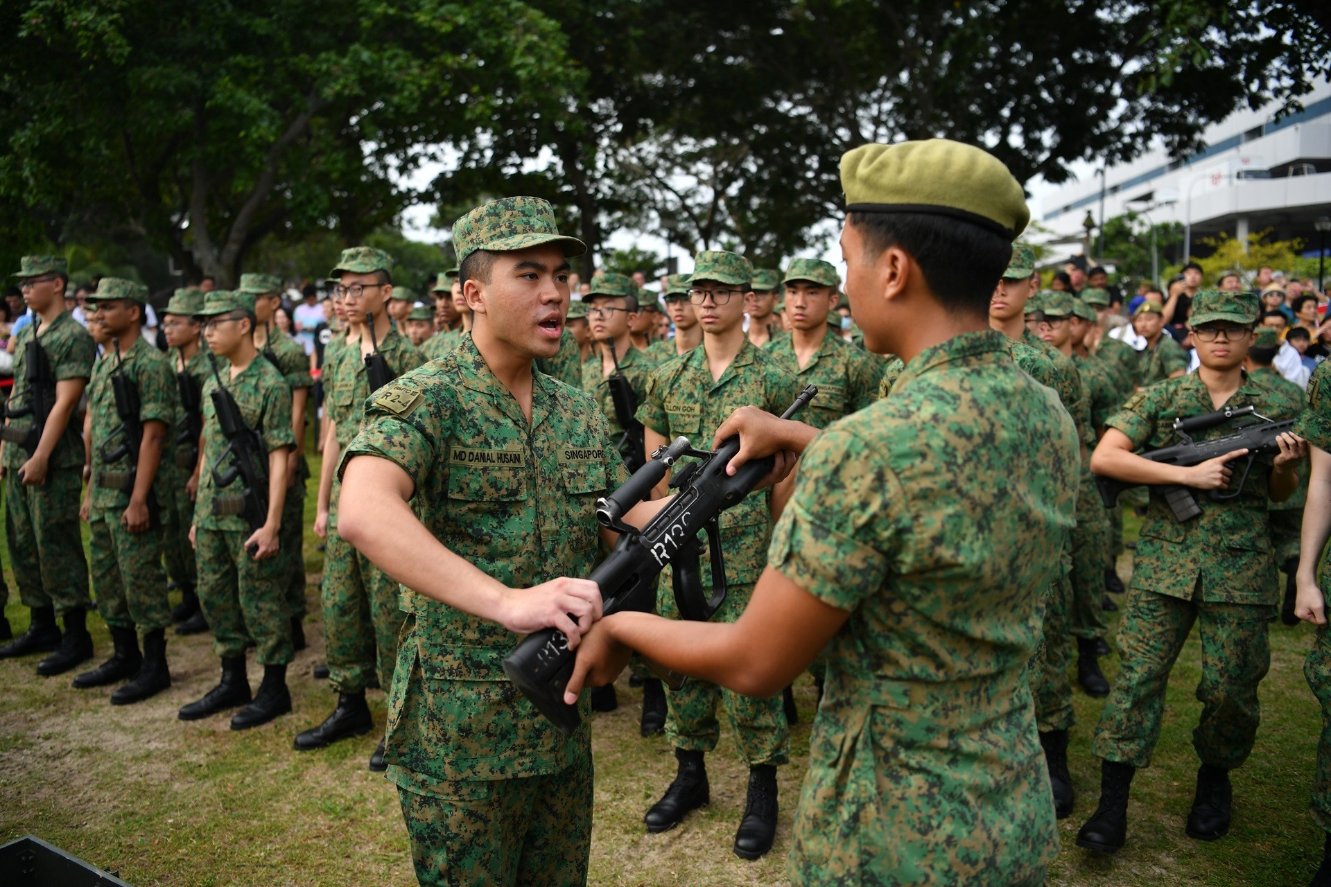 这个仪式对新兵来说是一个重要的里程碑。他们被授予新加坡21型突击步枪(SAR 21),也被赋予了保卫新加坡及其子民的责任。