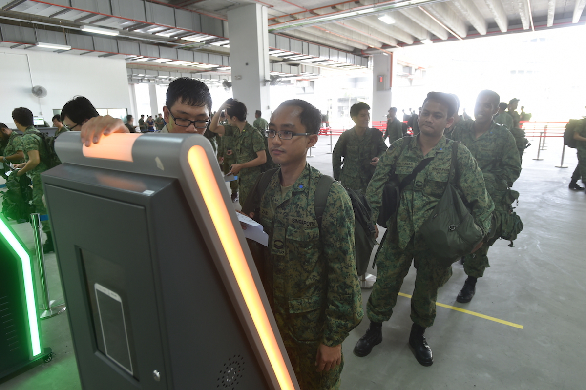 这处最新的动员和装配中心配备了国民服役单位为军事行动做好准备所需要的一切。自助服务亭,使战备国民服役人员办理回营手续的过程非常轻松。在扫描身份证后,他们会收到一份清单,列出需要领取的武器和各种装备。
