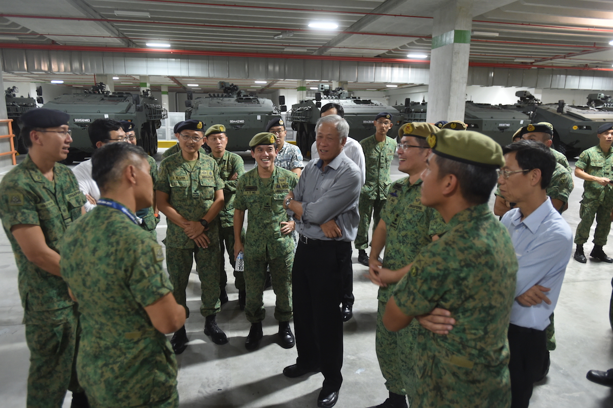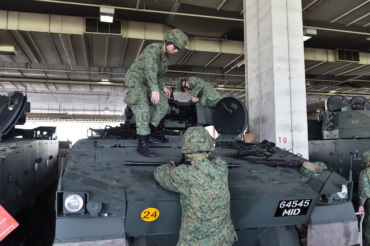 在双溪格当军营,新加坡装甲团第487营的战备国民服役人员也被动员。他们进行了类似的准备操练,为他们的装甲车辆做好作战准备。