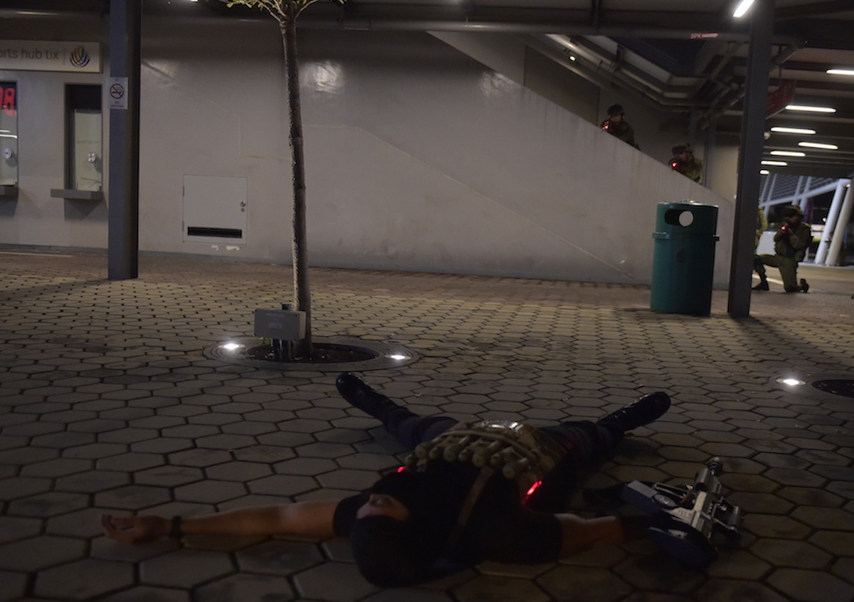 在当晚结束之前,新加坡第三步兵营接到任务:支持内政部机构在新加坡体育中心遏制和压制多个枪手的攻击。