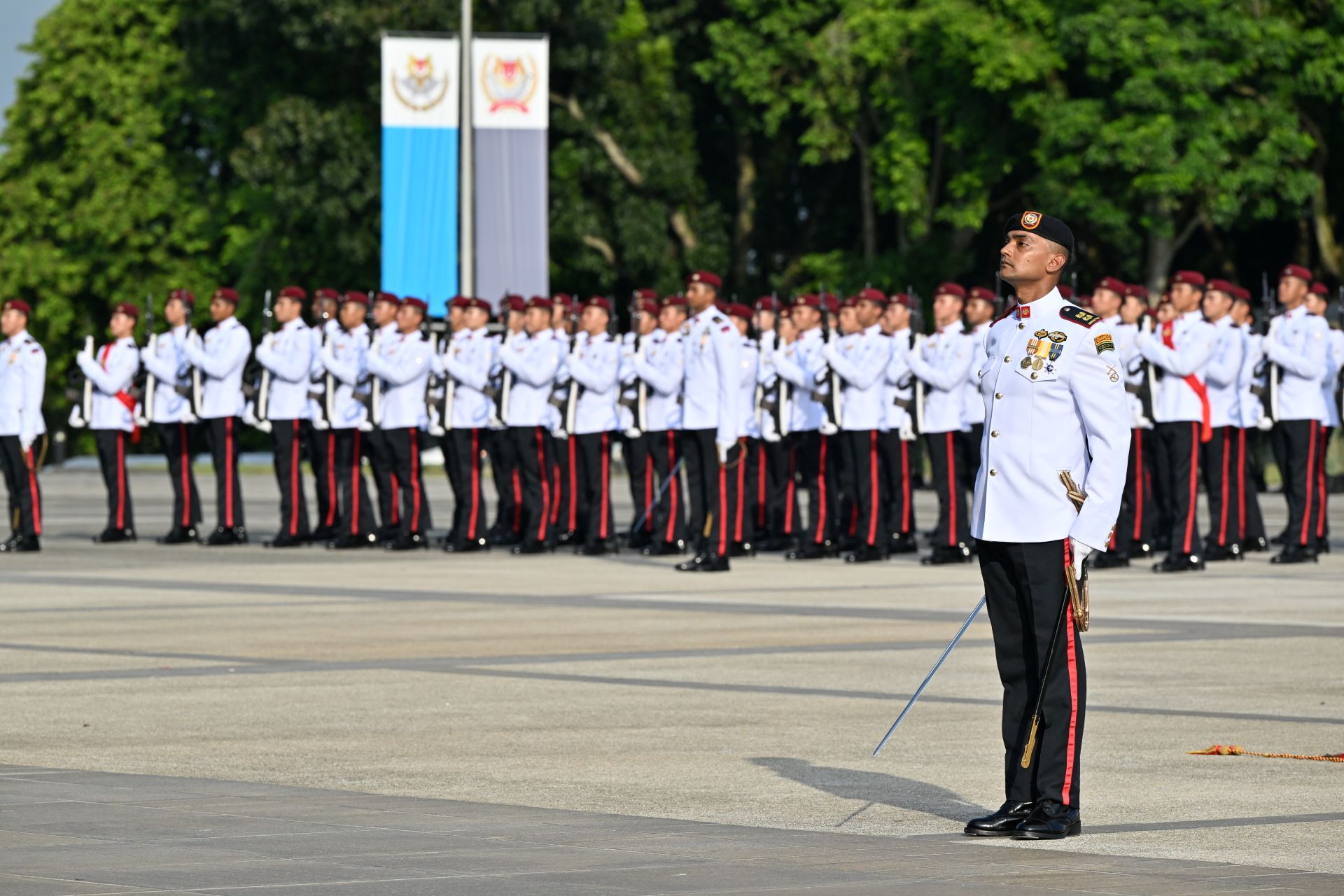 Lebih 2,000 askar lelaki dan wanita menyertai Perbarisan Hari SAF yang dirasmikan oleh Presiden Tharman Shanmugaratnam di Institut Tentera SAFTI.