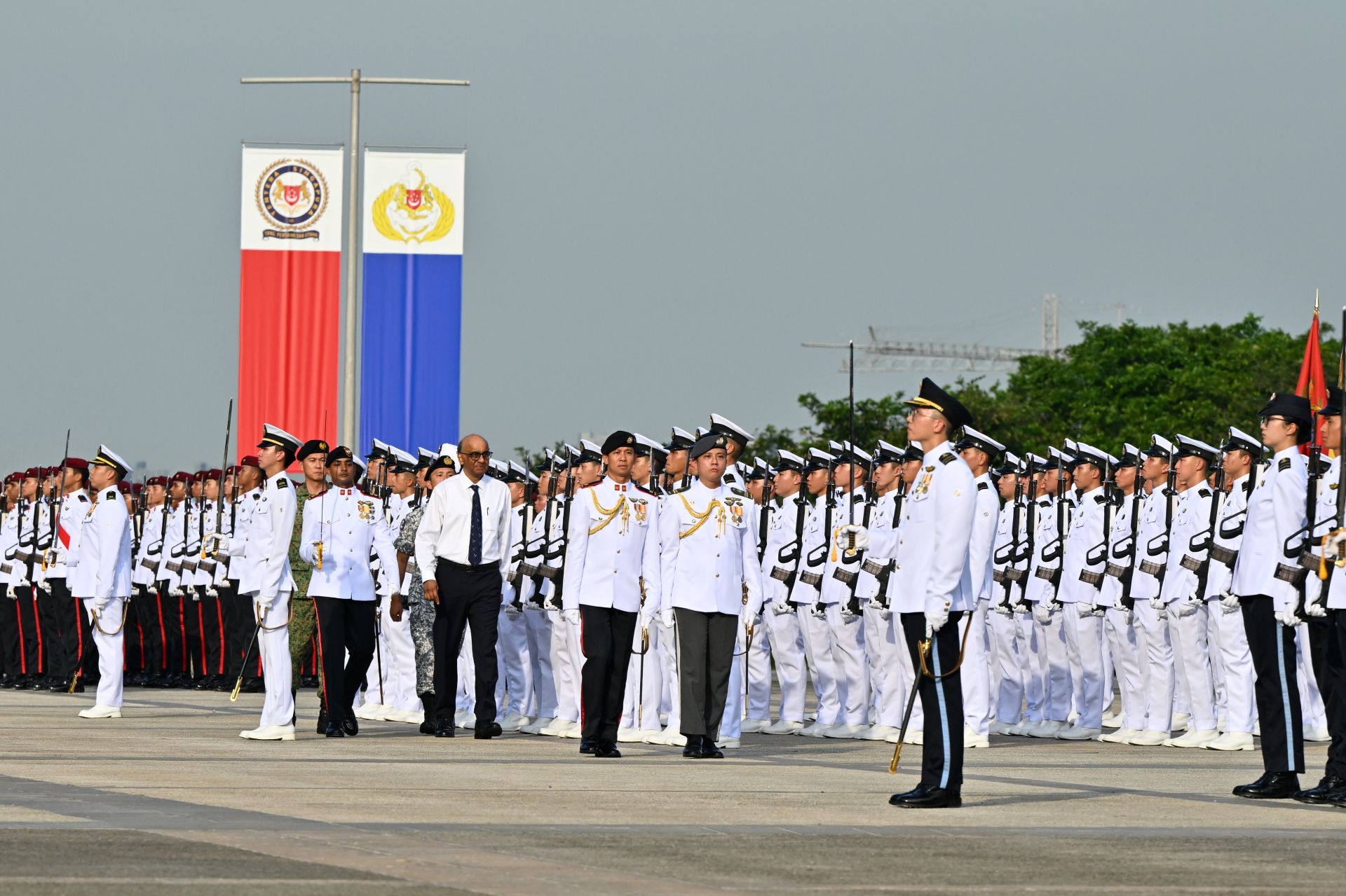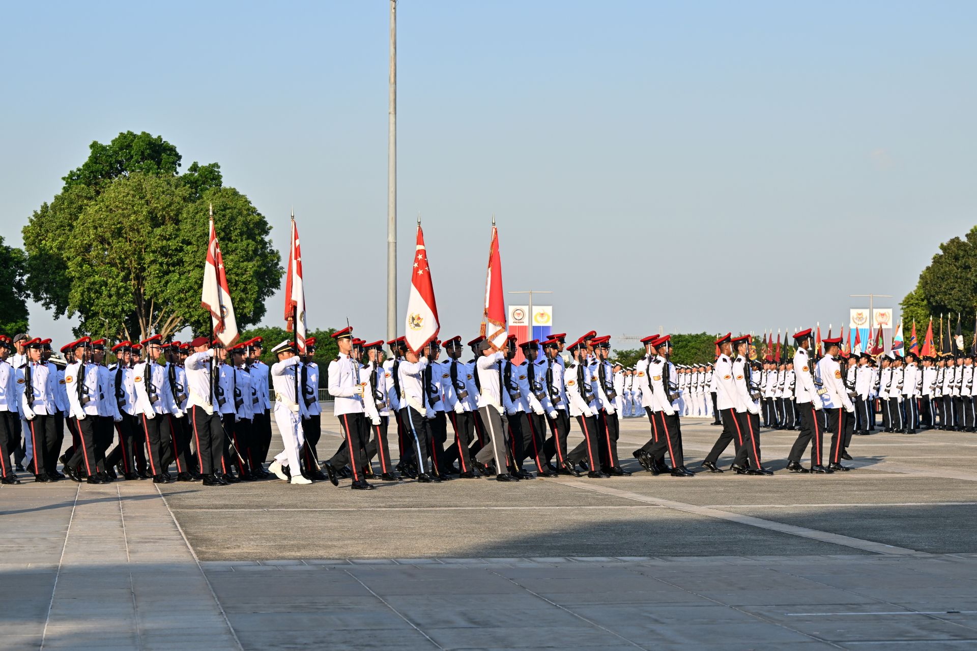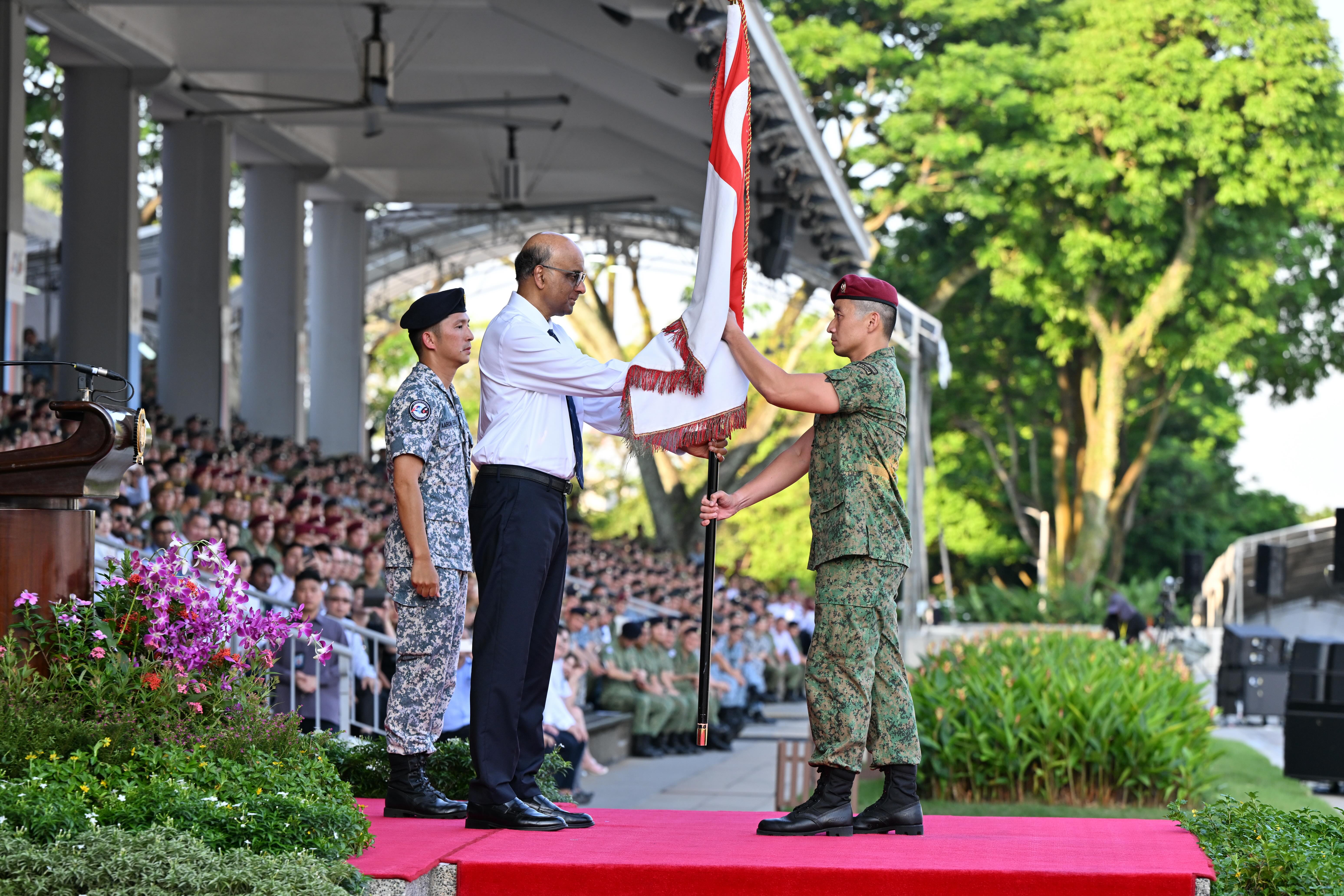 2,000 多名服役人员参加了由尚达曼(Tharman Shanmugaratnam)总统在新加坡武装部队军训学院主持的军人节检阅礼。