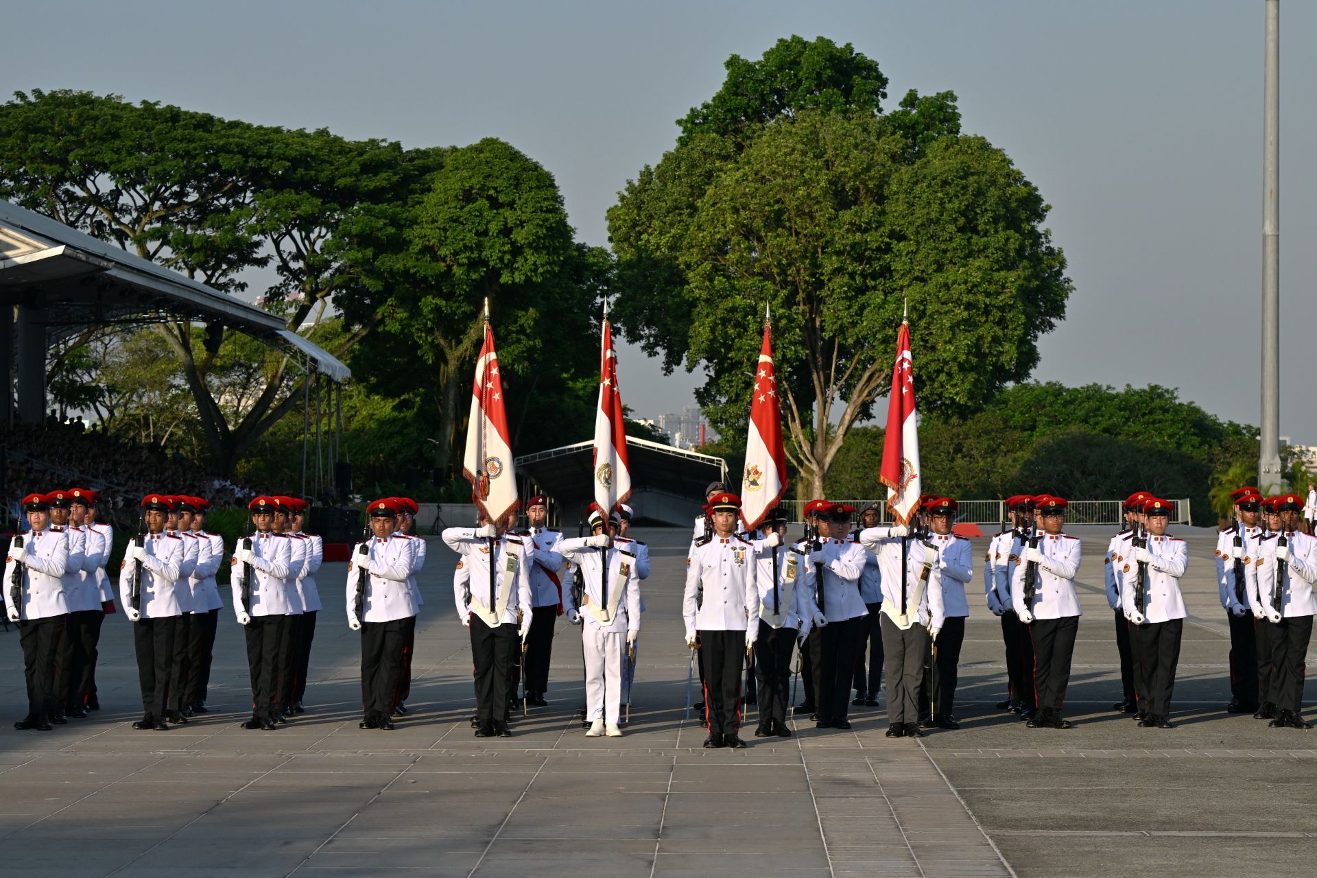 今年检阅礼的亮点是军旗列队,这是授予最高荣誉的特别仪式,为纪念新加坡武装部队成立六十周年而举行。