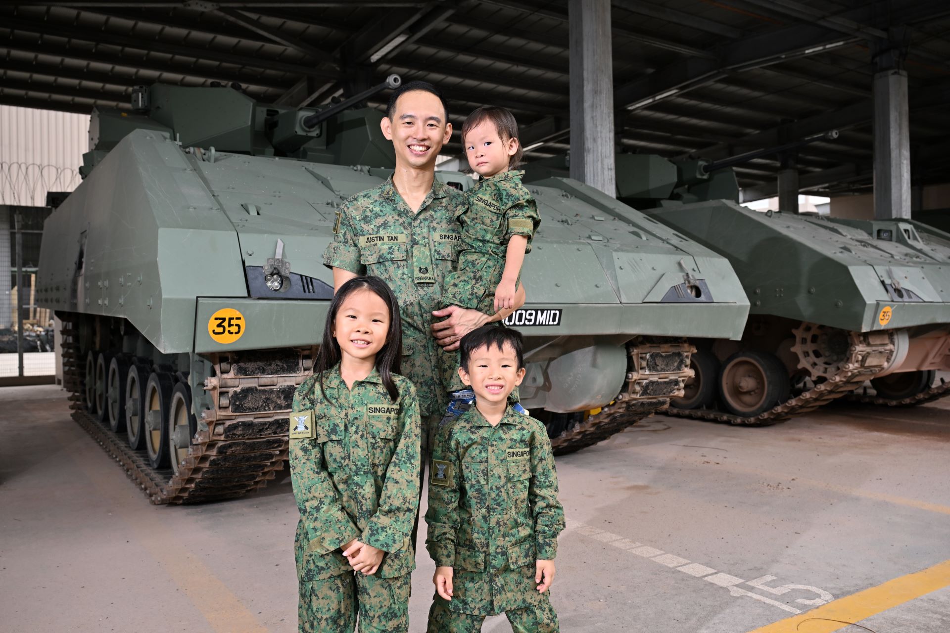 在今年的国锋报儿童节特别节目中,来自新加坡第四装甲旅的人力军官Tan Zhen Wei Justin少校实现了他们的愿望。他带着他的三个孩子 – 7岁的Danielle、5岁的Thaddeus和2岁的Asher来到双溪格当军营,以了解更多关于装甲编队的信息。