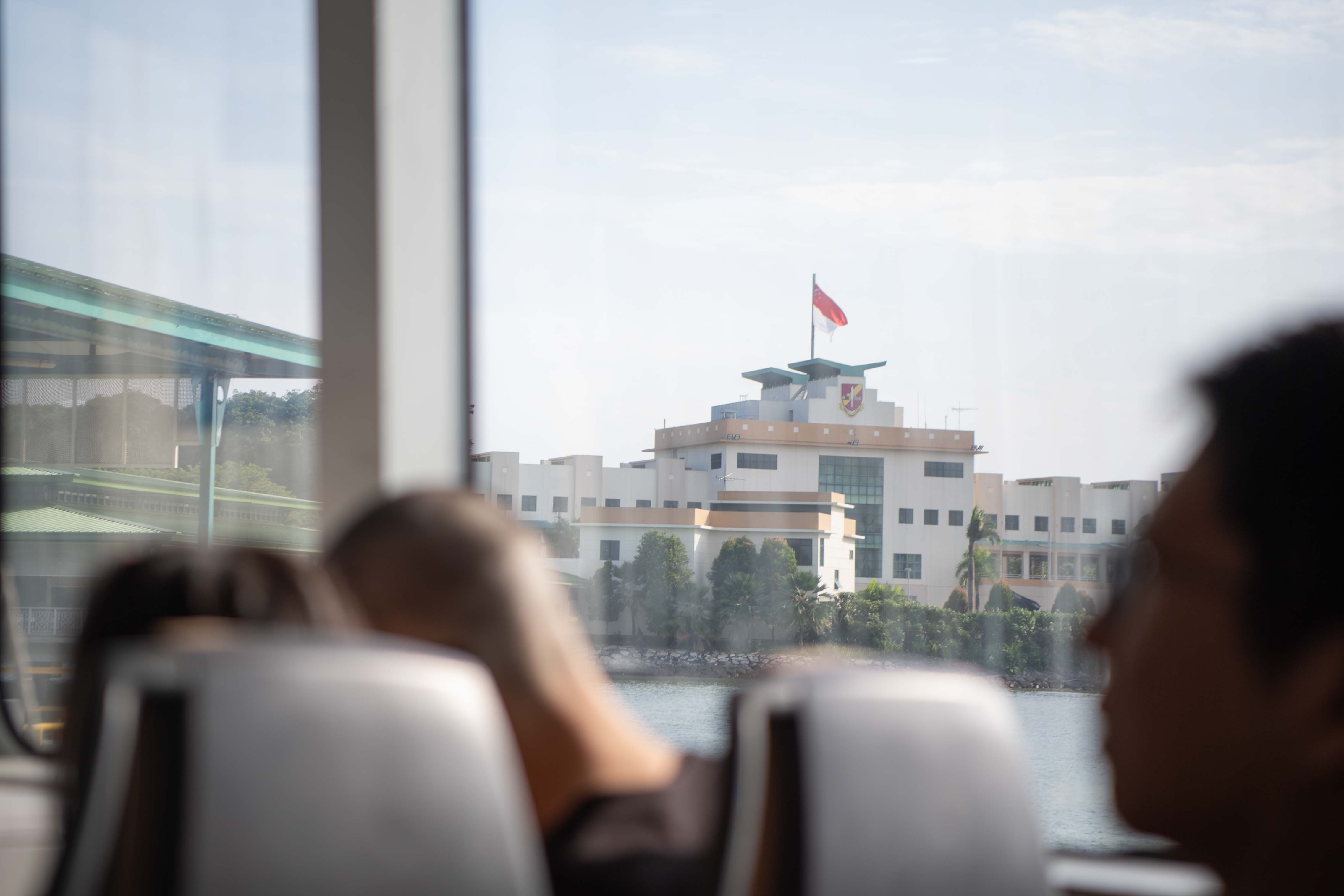 Recruits and their families getting their first glimpse of the Basic Military Training Centre (BMTC) from the ferry.