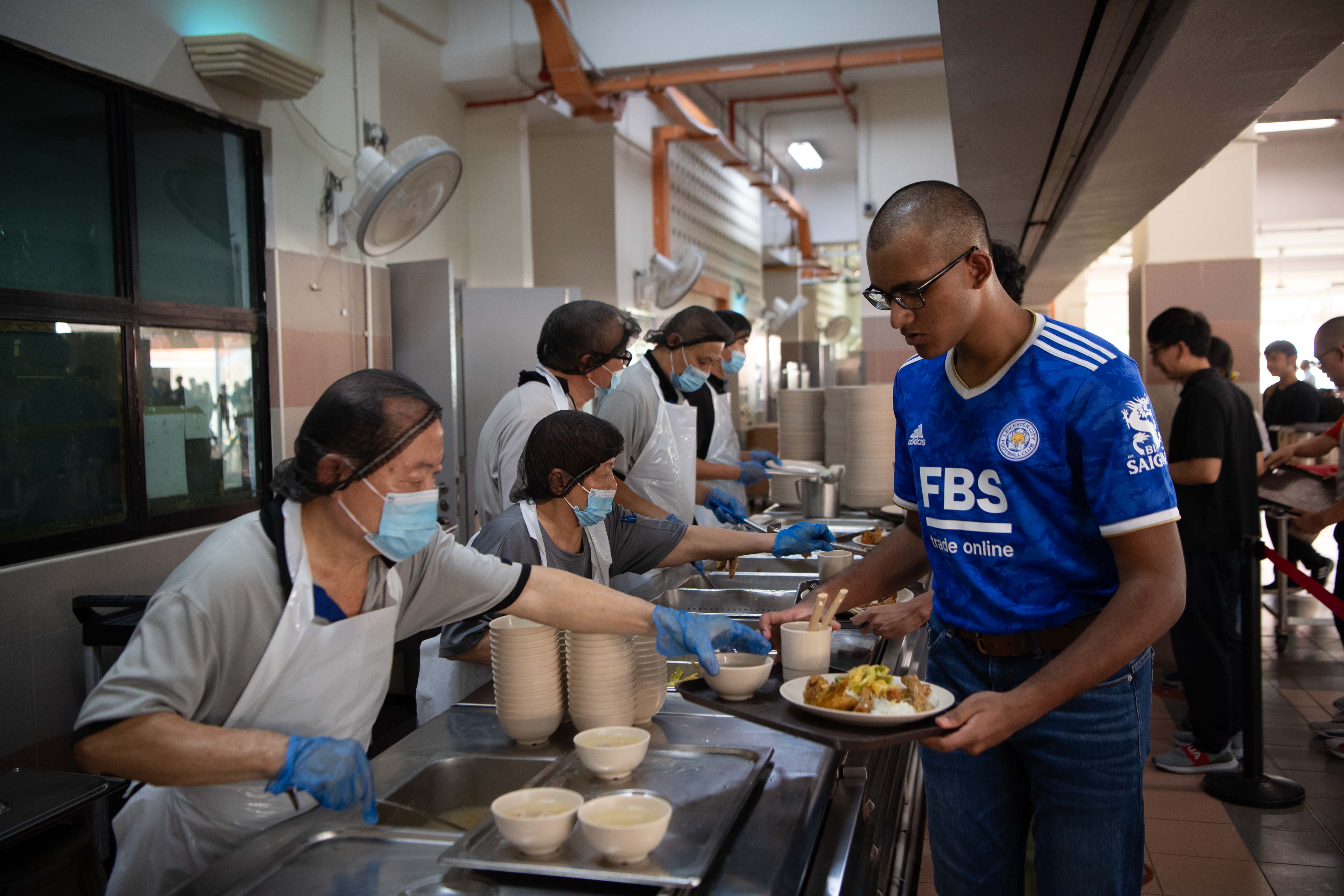 Parents join their sons for lunch at the Pulau Tekong cookhouse, experiencing the same meals that will fuel the recruits during their training.