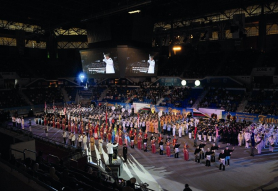 As the second last act of the show, the SAF Band put up an impressive display, showcasing Singapore's multi-racial culture in a lively repertoire titled Spirit of Celebration. The performance comprised popular tracks such as Munneru Valiba ("Progress, Young Man" in Tamil) and Yong Gan De Zhan Shi ("Brave warriors" in Chinese).