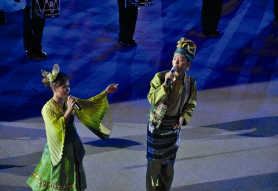 Together with Singapore Idol 2009 winner Lance Corporal (LCP) Sezairi Sezali, the duo belted out famous Bruneian folk song Kampong Ayer ("Water Village" in Malay) to the live accompaniment of the SAF Band. The crowd fell silent when the music introduction filled the stadium, and broke into rapturous cheers when the vocalists started singing.