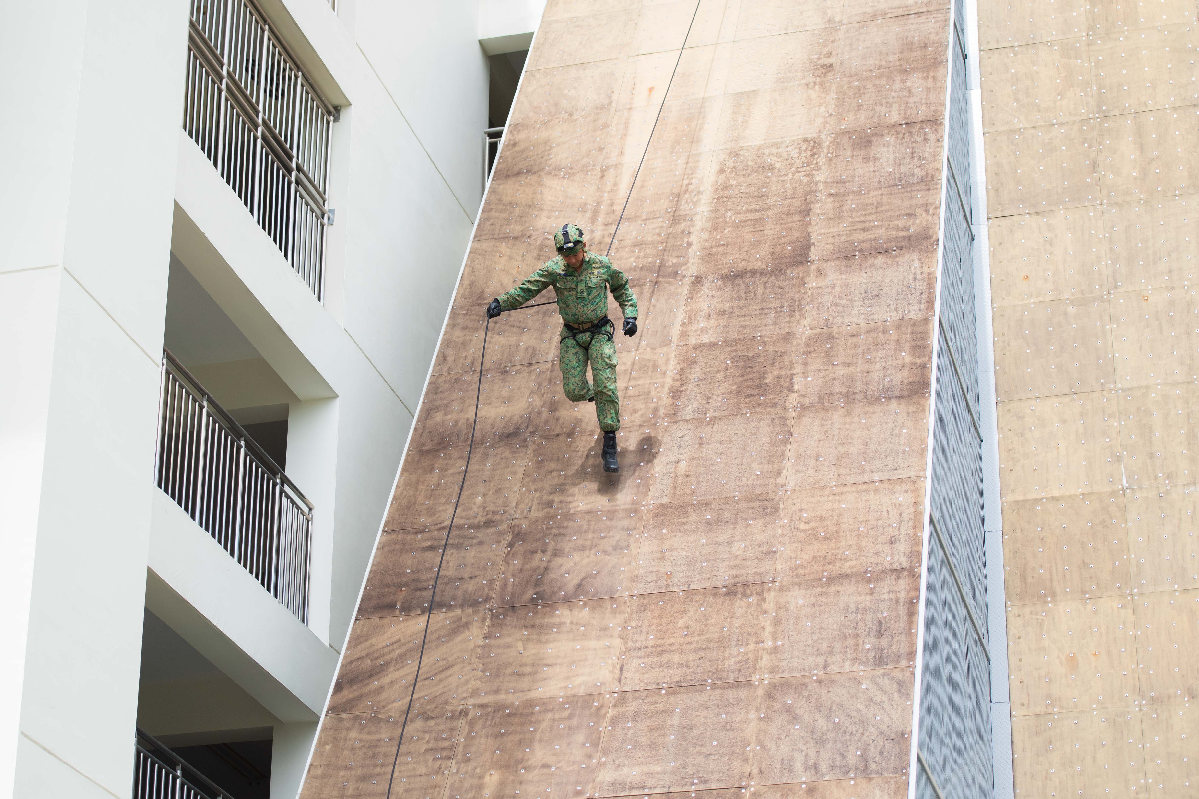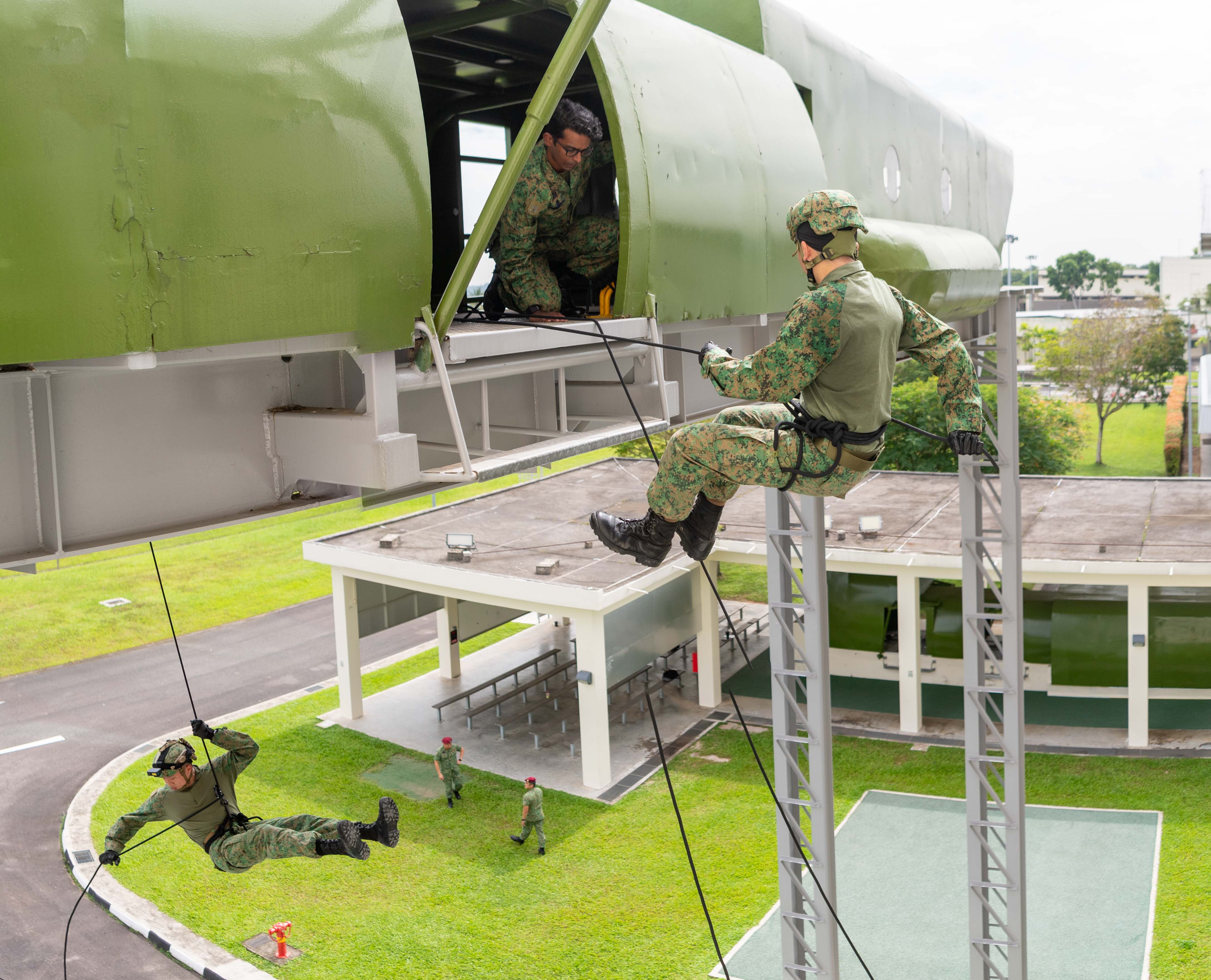 去年12月,绳降训练设施作为空降伞兵训练设施的一部分,迎来10周年。绳降训练设施是一个集机载、绳索和绳降训练的全天候设施,由国防部长黄永宏医生于2024年启动。